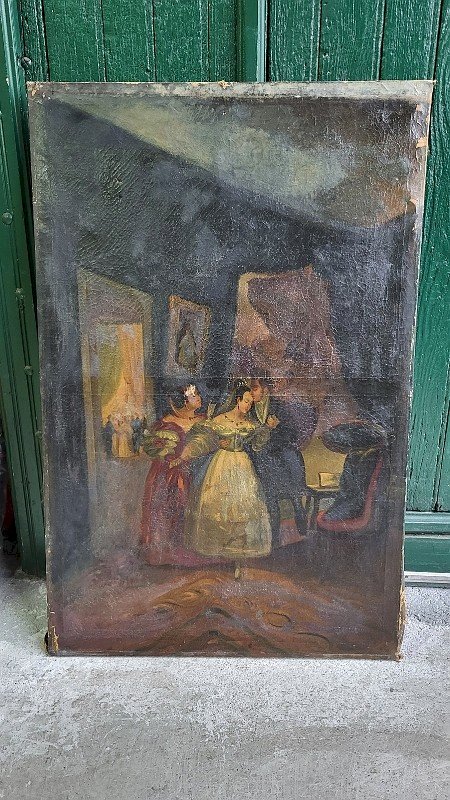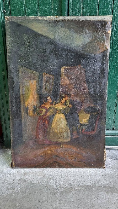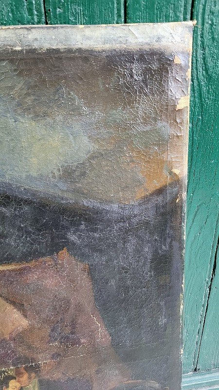 nice large oil painting on canvas from the 19th century, it needs to be restored and cleaned, it has no signature, please look carefully at the photos before purchasing, it is torn in one place, there is work to be done, but it deserves a good restoration, it measures 69 cm in width and 106 cm in height Type: Oil Country of origin: Metropolitan France Features: Signed, On canvas Theme: Character