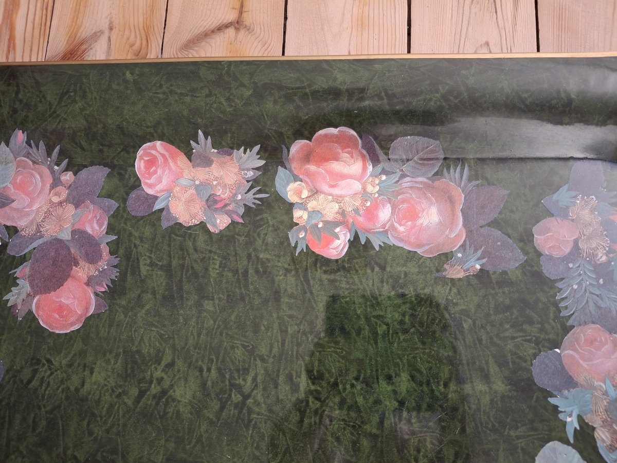 It is made of painted metal. It is in very good condition, with a few scratches on the back as seen in the last photo, but it has neither dents nor deformation.
