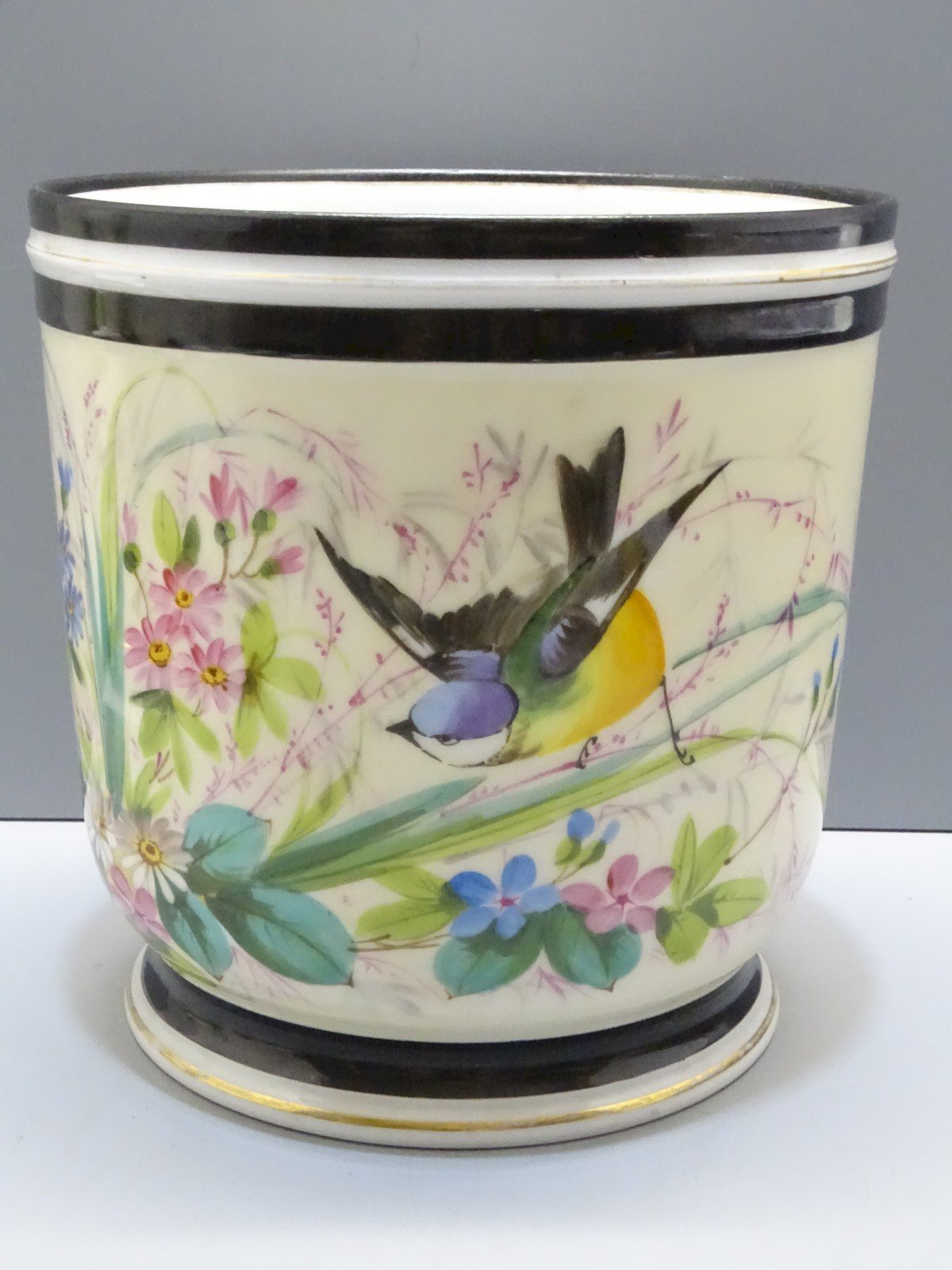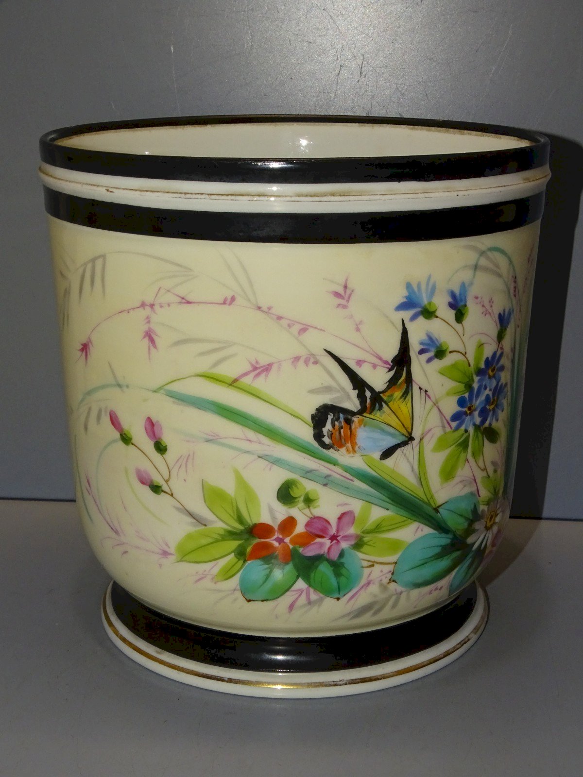 Beautiful porcelain cache pot, Napoleon III, 19th century - With a lovely design of a blue tit, a butterfly, and a multitude of colorful flowers - note a slight wear on the foot edge (sanded) (see photos) - in very good condition, no cracks, it is in its found state - ref. 1V250703/267 Height 20.4 cm - top diameter 14.9 cm - inner diameter 18.5 cm - foot diameter 16.8 cm - Weight 1.527 kg SHIPPING POSSIBLE VIA MONDIAL RELAY or COLISSIMO upon request VERY GOOD PACKAGING GUARANTEED THANK YOU for CAREFULLY LOOKING AT ALL the PHOTOS as THEY ARE AN INTEGRAL PART of the DESCRIPTION and ALLOW YOU to SEE the OBJECT AT ITS BEST with ITS POSSIBLE SMALL DEFECTS -