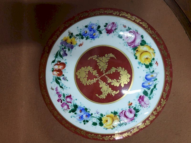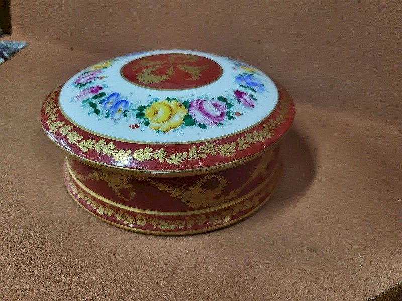 magnificent and large porcelain candy box by Gambet Lyon, hand-decorated, in very good condition, with a signature "RS" on the lid. It measures Type: Tableware, Kitchen Sub-type: Box Material: Porcelain