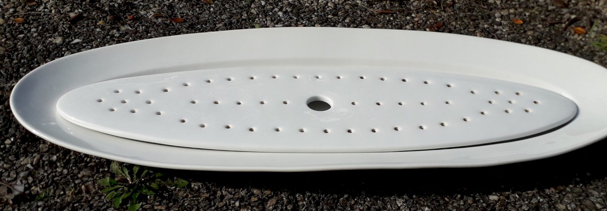Large fish platter, and its drainer, made of 19th-century white porcelain.