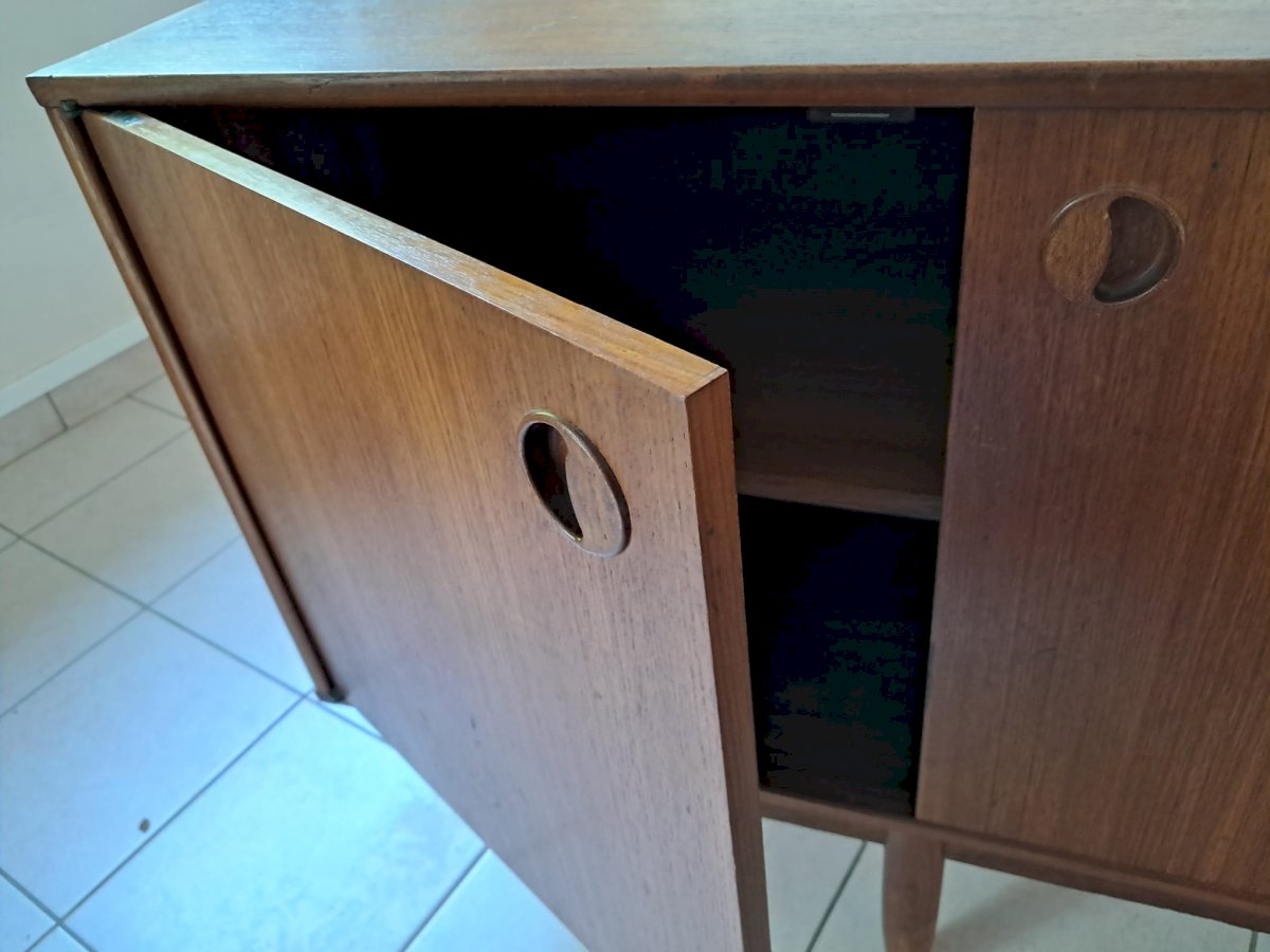 Authentic Scandinavian sideboard from the 1960s in teak, with a clean design typical of Nordic furniture.