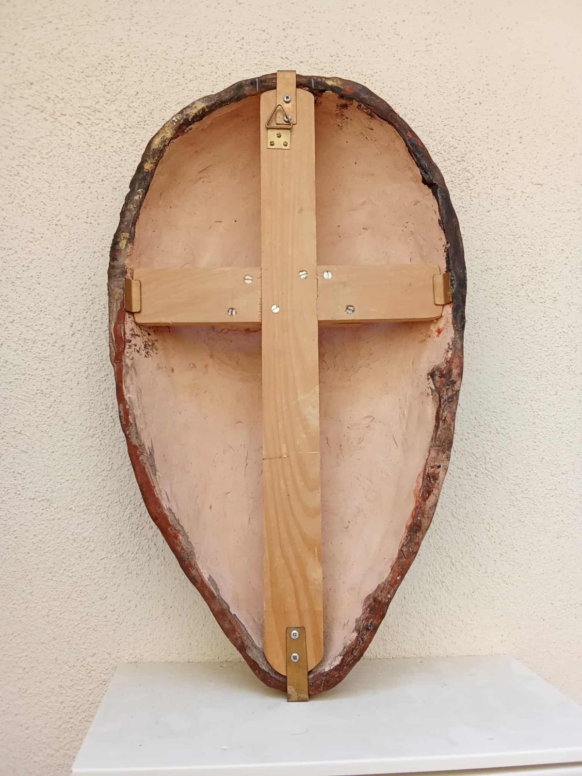 Ethnic handcrafted mask/Mexican Tribal Art/Warrior Head/Aztec God in polychrome terracotta