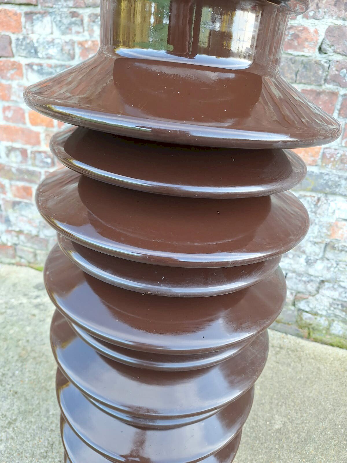 Thank you for writing to me if you would like to make me an offer. Large vintage ceramic structure (+100cm), retro decoration. Dimensions 36xh104.5cm neck 15cm. Former insulator for high voltage lines. Ideal to transform into a lamp, garden decoration (please note no bottom), etc. Heavy, around sixty kg. Pickup at my home or delivery possible to the curb by carrier (e.g., €60 to Paris and the Paris region, please contact me for other destinations). Delivery times of 2 to 4 days are imposed by and are therefore given purely for informational purposes. Industrial porcelain space-age lighting Material: Ceramic