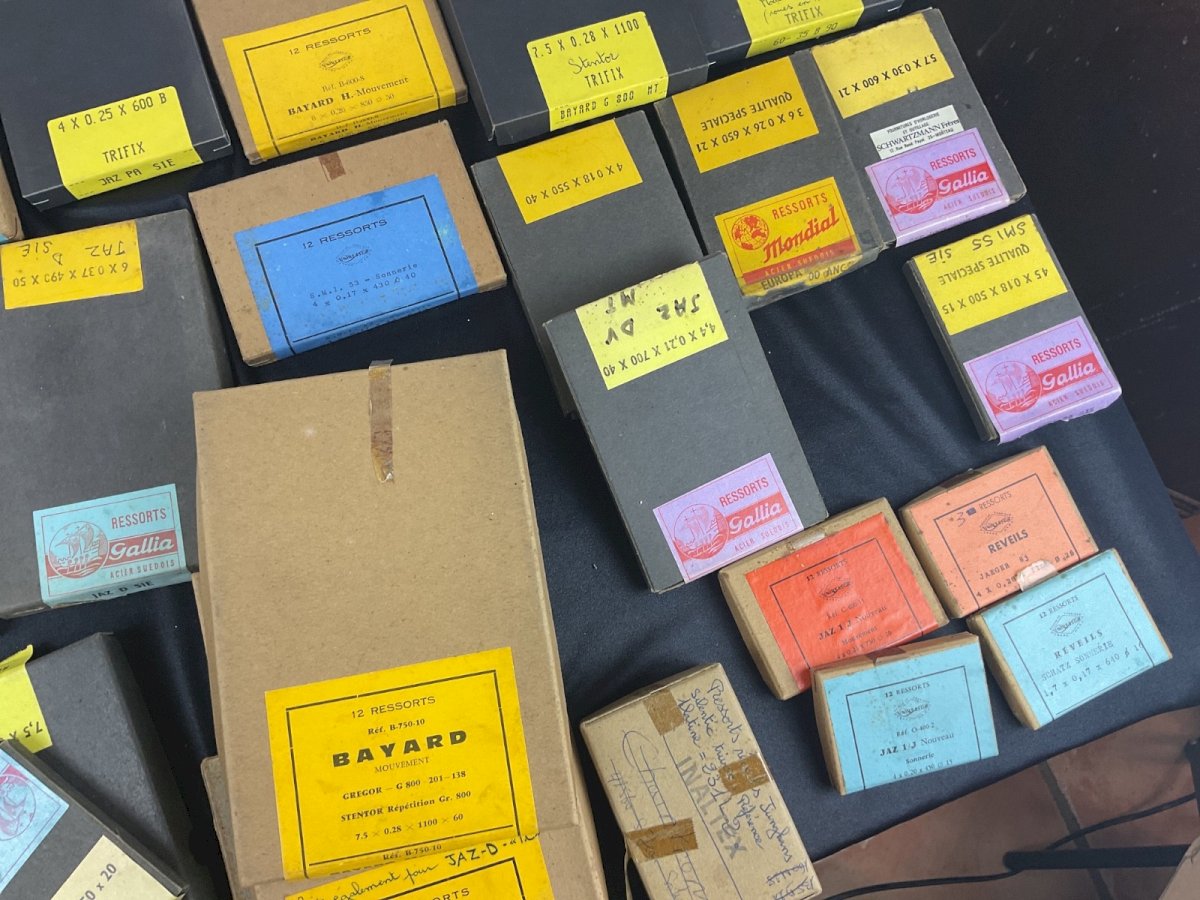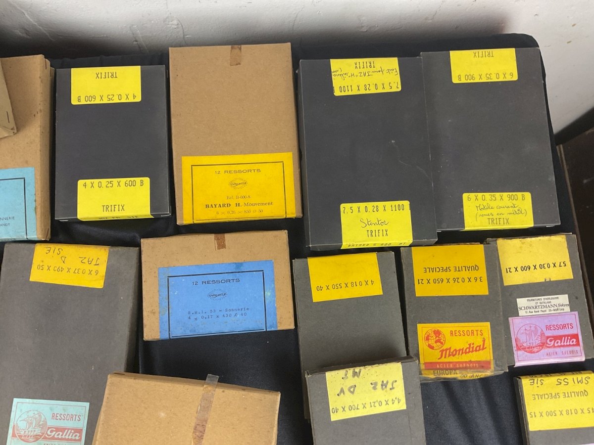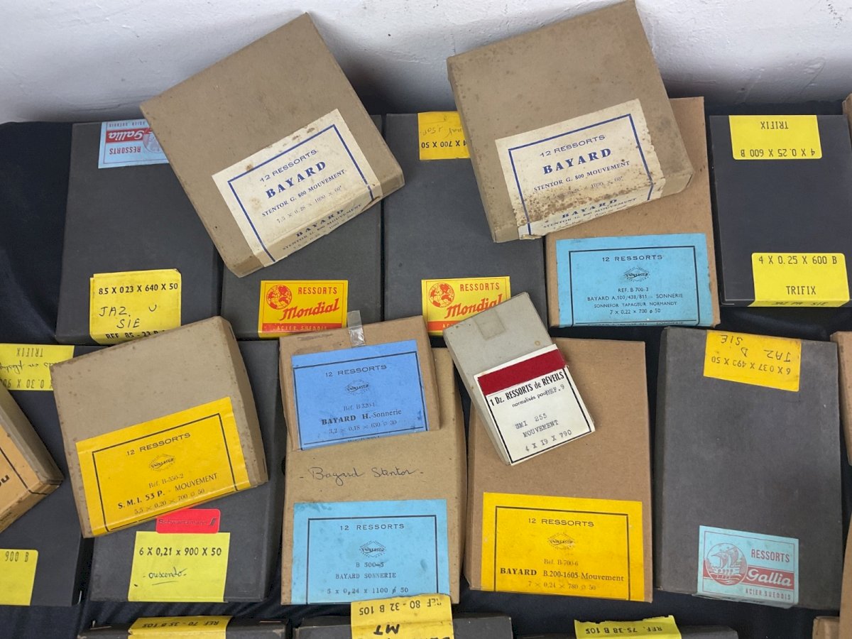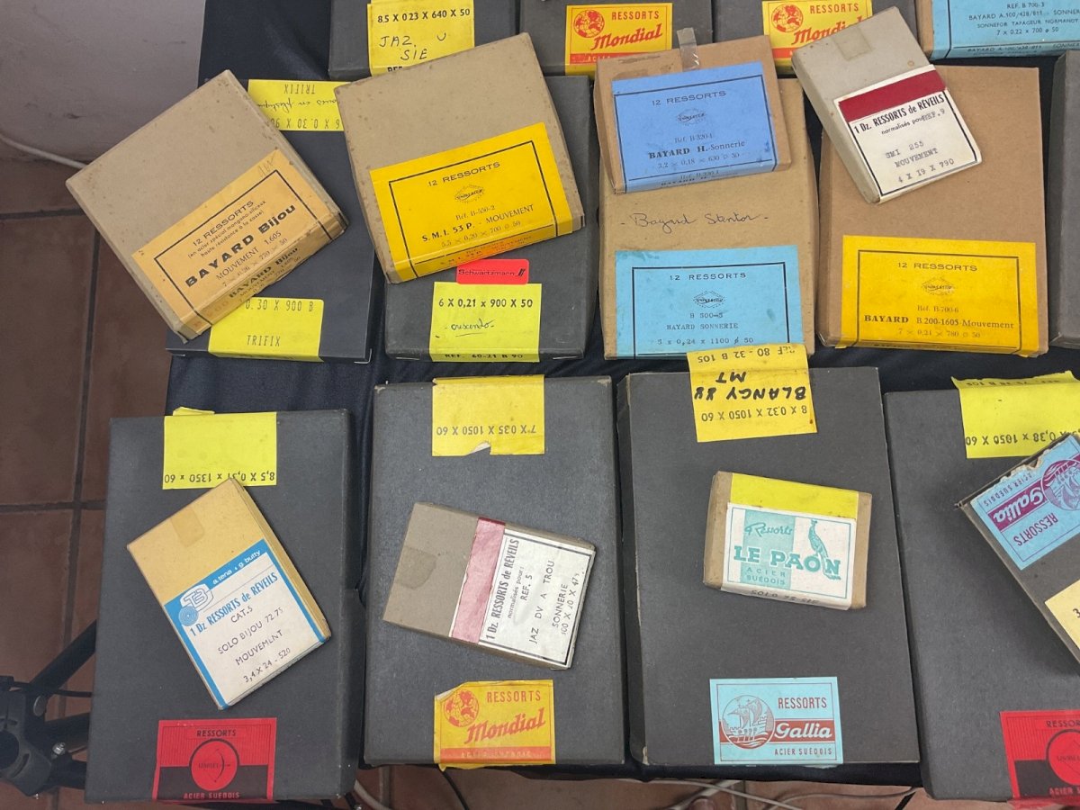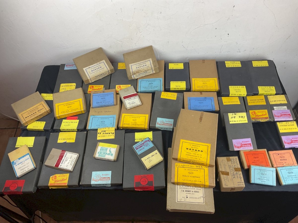 Large clockmaker lot - alarm clock springs Clock Pendulum Watchmaking Spare Parts Sold only in bulk, no details The boxes have been opened, some are missing Total weight: 4 kg Condition: Used - Very good condition: This item has been lightly used, but its condition is acceptable. It may show some signs of wear, such as minor scratches or tarnishing. All imperfections must be shown and described in the seller's listing. Type: Wristwatch Department: Adult unisex
