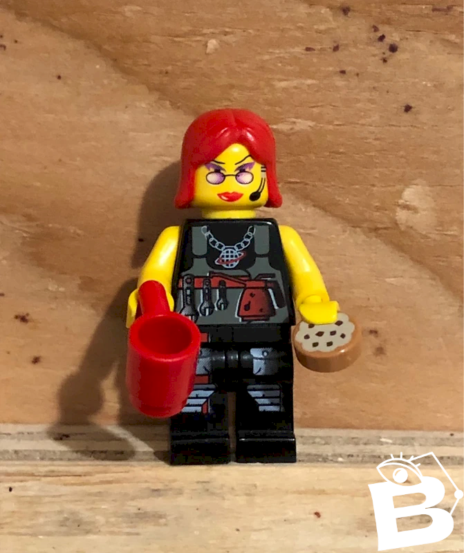 Lego figurine mechanic repairman on coffee break in excellent condition.
