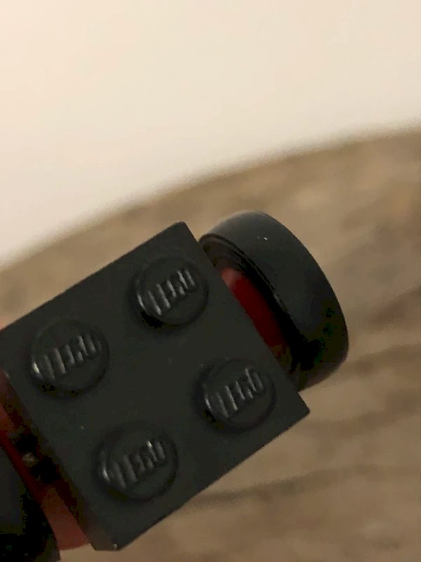 Lego pieces/accessories in generally good condition but with rust spots on the metal rod.