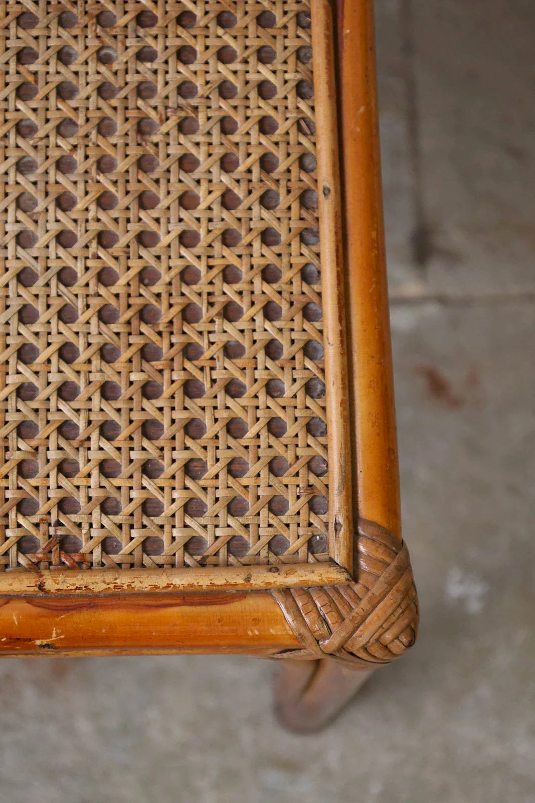Elevate your living room with this coffee table made of caning and bamboo, enhanced by a dark structure with balanced lines. Its elongated format and low height provide a discreet yet practical presence for placing books, trays, or plants, while allowing light to circulate. The combination of delicate caning and dark wood creates a warm and natural atmosphere, ideal for a bohemian-chic or sober contemporary interior, adding texture and elegance without weighing down the space. Length: 100 cm Width: 50 cm Height: 37 cm Condition: Used: Item has been used. Item shows some superficial signs of wear,... Used: Item has been used. Item shows some superficial signs of wear, fully operational and functioning properly. It may be a display model or an item returned to the store after a short period of use. possible imperfections. Brand: Debongout Type: Vintage product Material: Bamboo, Caning Style: Country Custom: Coffee tables