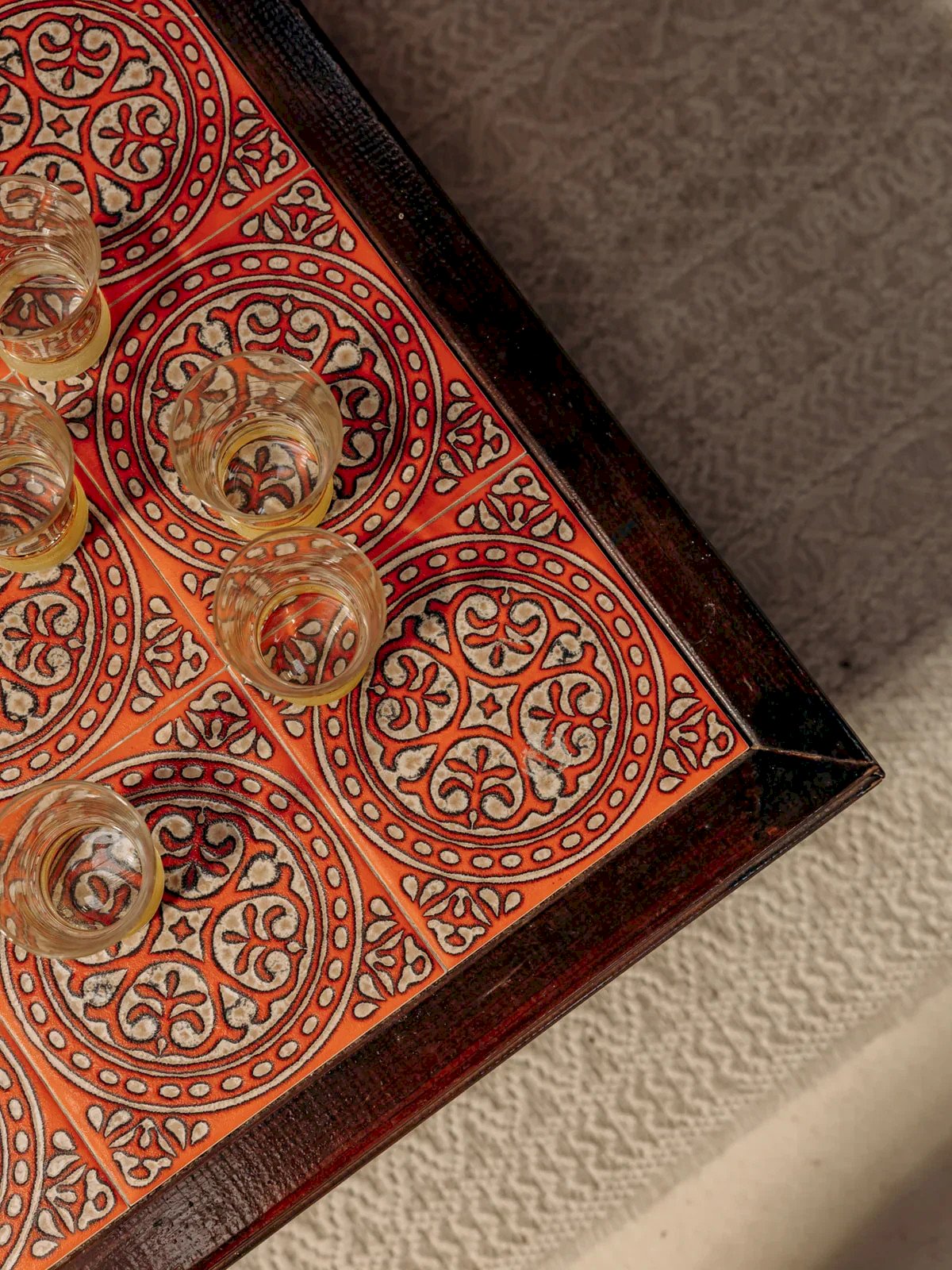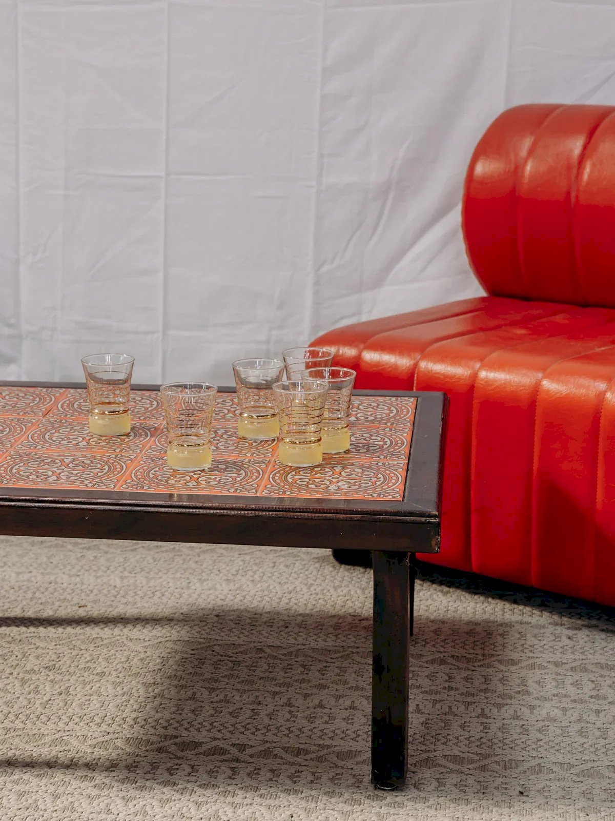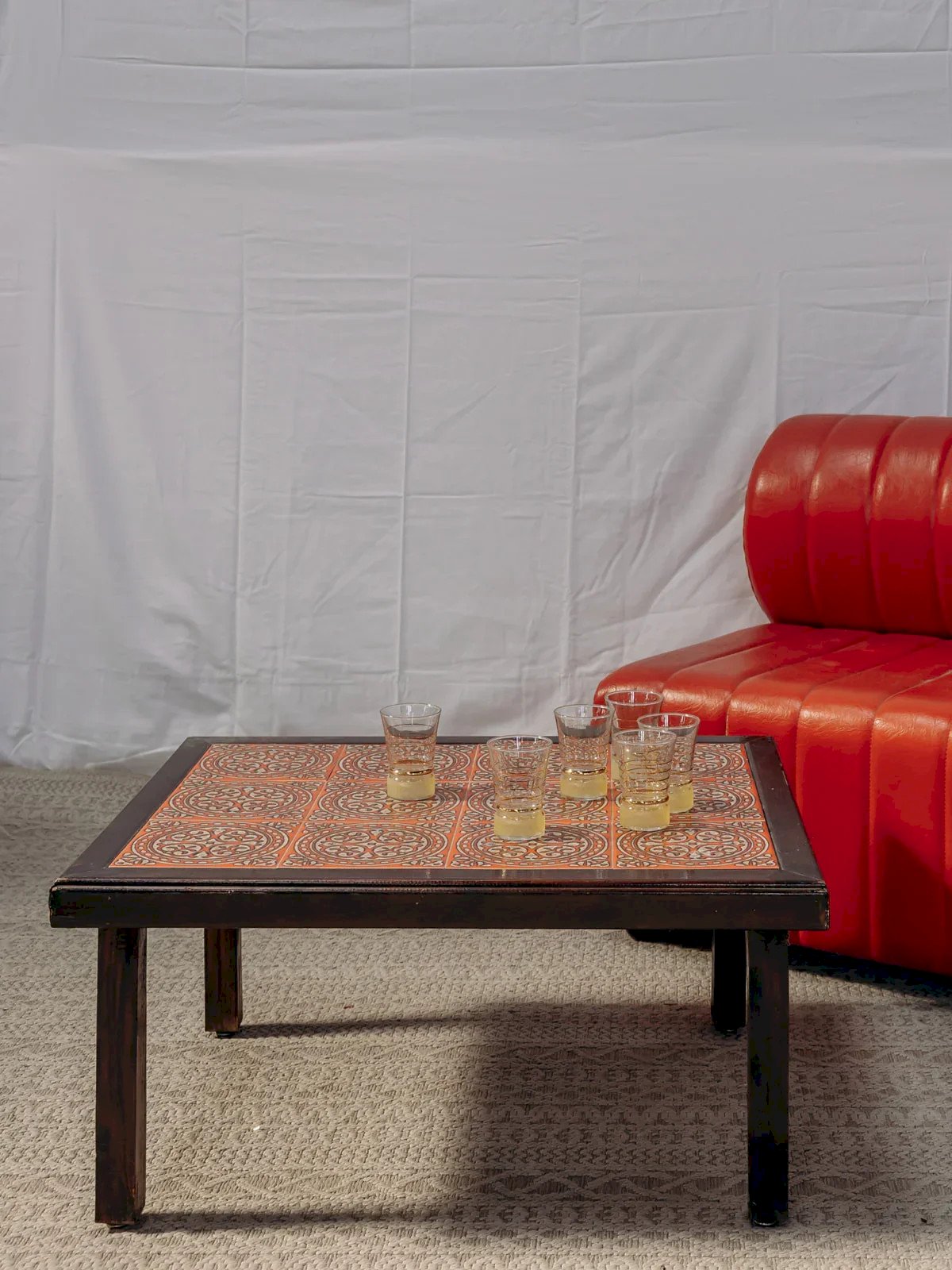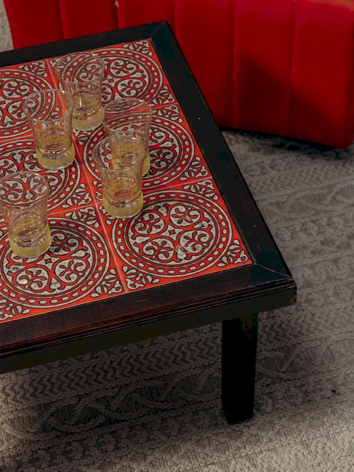 Discover this elegant dark wood coffee table, enhanced by a splendor of red pottery. With some signs of wear that add character to its charm, it will fit perfectly into a modern or vintage interior. Its clean lines and refined design make it an ideal centerpiece for your convivial moments around coffee or aperitifs. Bring a touch of originality to your living room with this unique piece. Light wear. Length: 70 cm Width: 54 cm Height: 33 cm Condition: Used: Item has been used. Item shows some superficial signs of wear, fully operational and functioning correctly. It may be a demonstration model or an item returned to the store after a short period of use. The possible imperfections. Brand: Debongout Type: Curated product Material: Wood, Pottery Style: Country Custom: Coffee tables