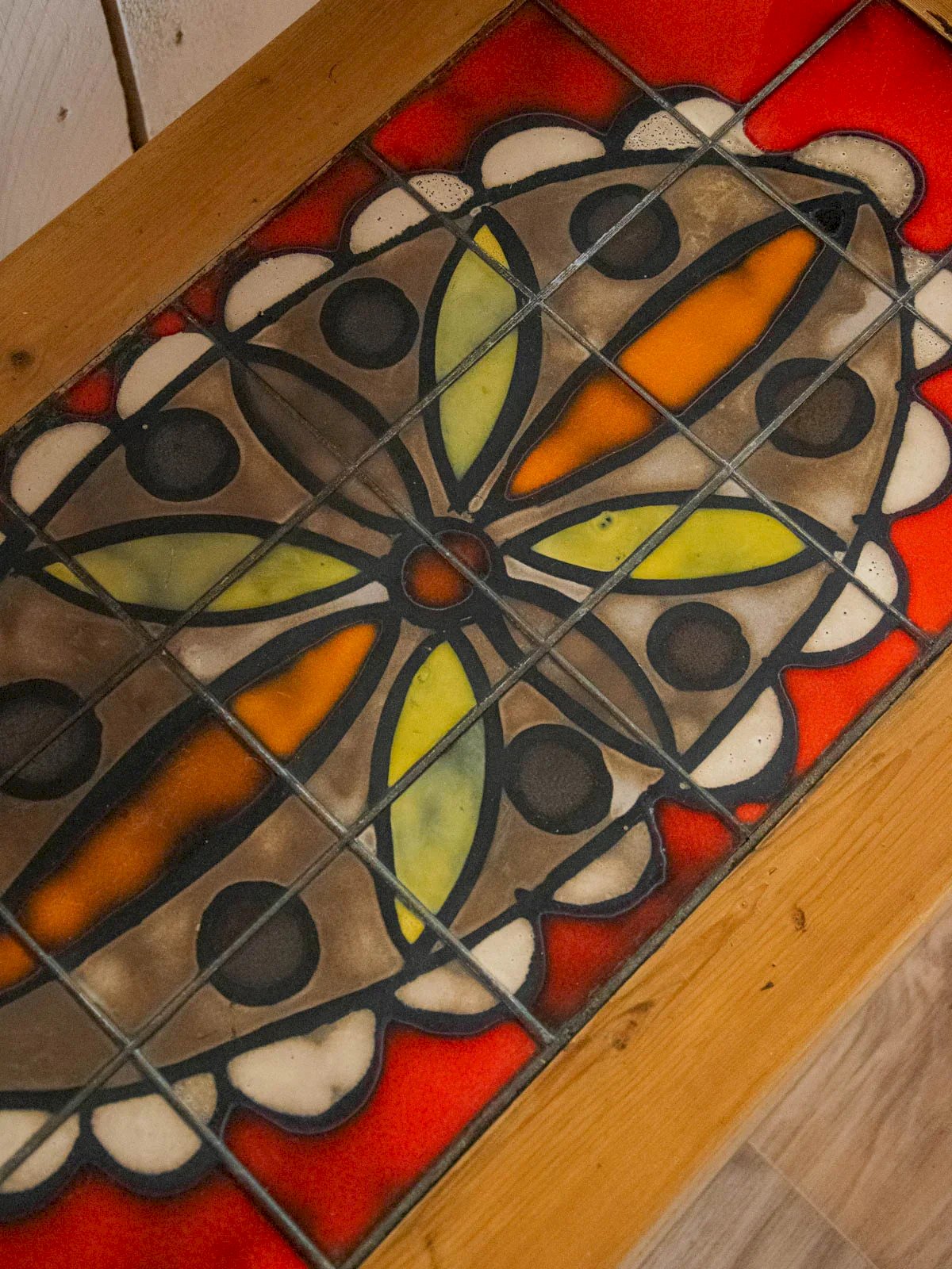 Enhance your living room with this coffee table from the Monsan Picard workshops in Toulouse, featuring a ceramic top set on a wooden structure and supported by wrought iron legs. Its long and low proportions provide a wide surface for books, objects, and appetizers, while maintaining an airy appearance thanks to the metal work. The combination of smooth ceramic, warm wood, and wrought iron creates a contemporary workshop atmosphere that is elegant and welcoming. Length: 103 cm Width: 42.5 cm Height: 40 cm Height under the top: 36 cm Condition: Used item with some superficial wear marks, fully operational and functioning correctly. It may be a display model or a returned item after a short period of use, with possible imperfections. Brand: Debongout Type: Vintage product Material: Ceramic, Wood, Iron Style: Country Personalized: Coffee tables