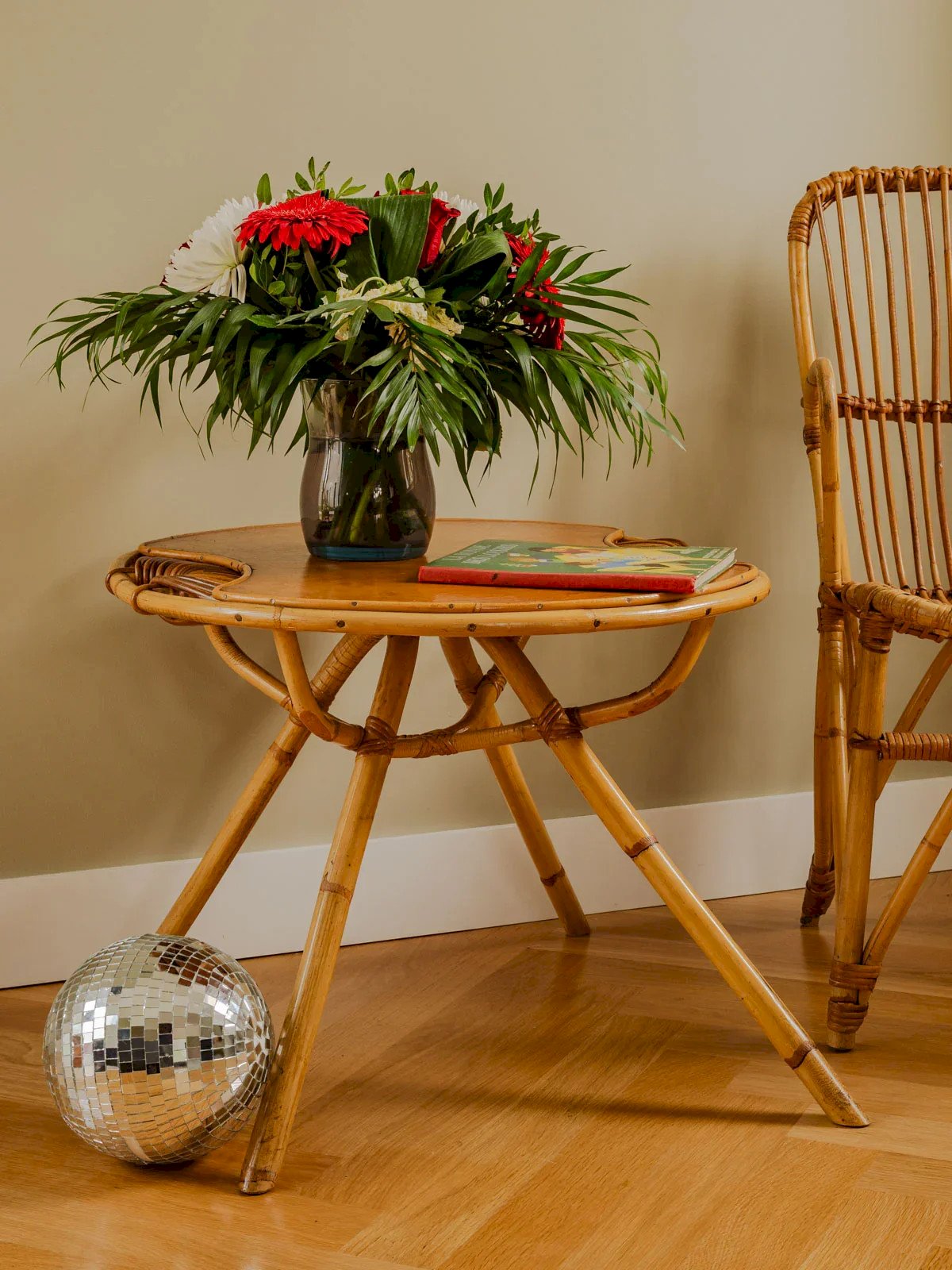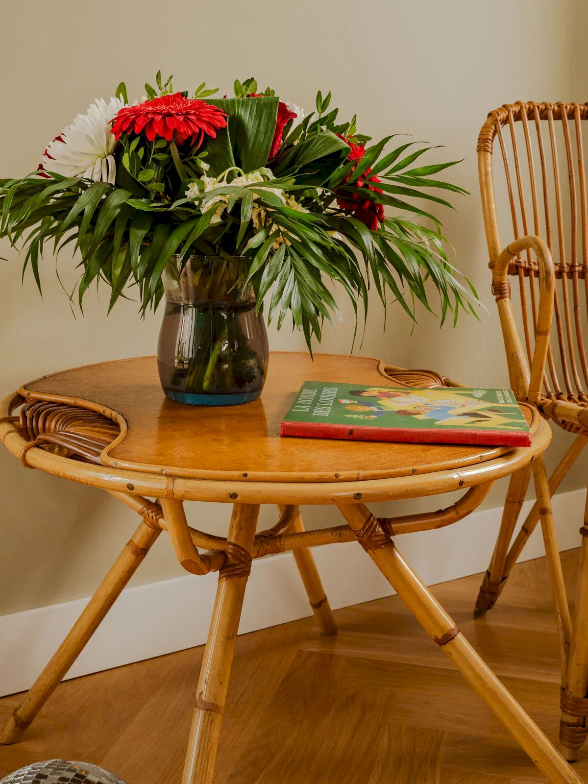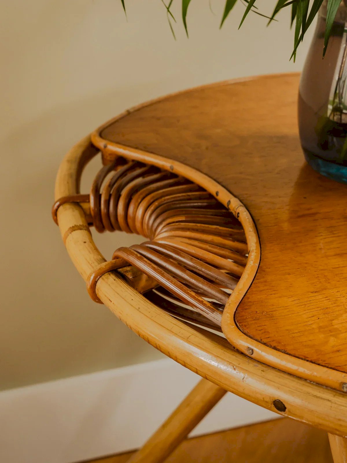This rattan table with a beautiful wooden top combines elegance and practicality, perfect for adding a natural touch to your interior or exterior. With its rattan base, it adapts to all atmospheres, whether for an aperitif on the terrace or a moment of conviviality in the living room. Although some signs of use give it authentic charm, it remains robust and functional, inviting hours of sharing and relaxation. Height: 50 cm Diameter: 63 cm Condition: Used: Item has been used. Item showing some superficial signs of wear... Used: Item has been used. Item showing some superficial signs of wear, fully functional and operating correctly. It may be a demonstration model or an item returned to the store after a short period of use. any potential imperfections. Brand: Debongout Type: Vintage product Material: Rattan Style: Country Custom: Coffee tables