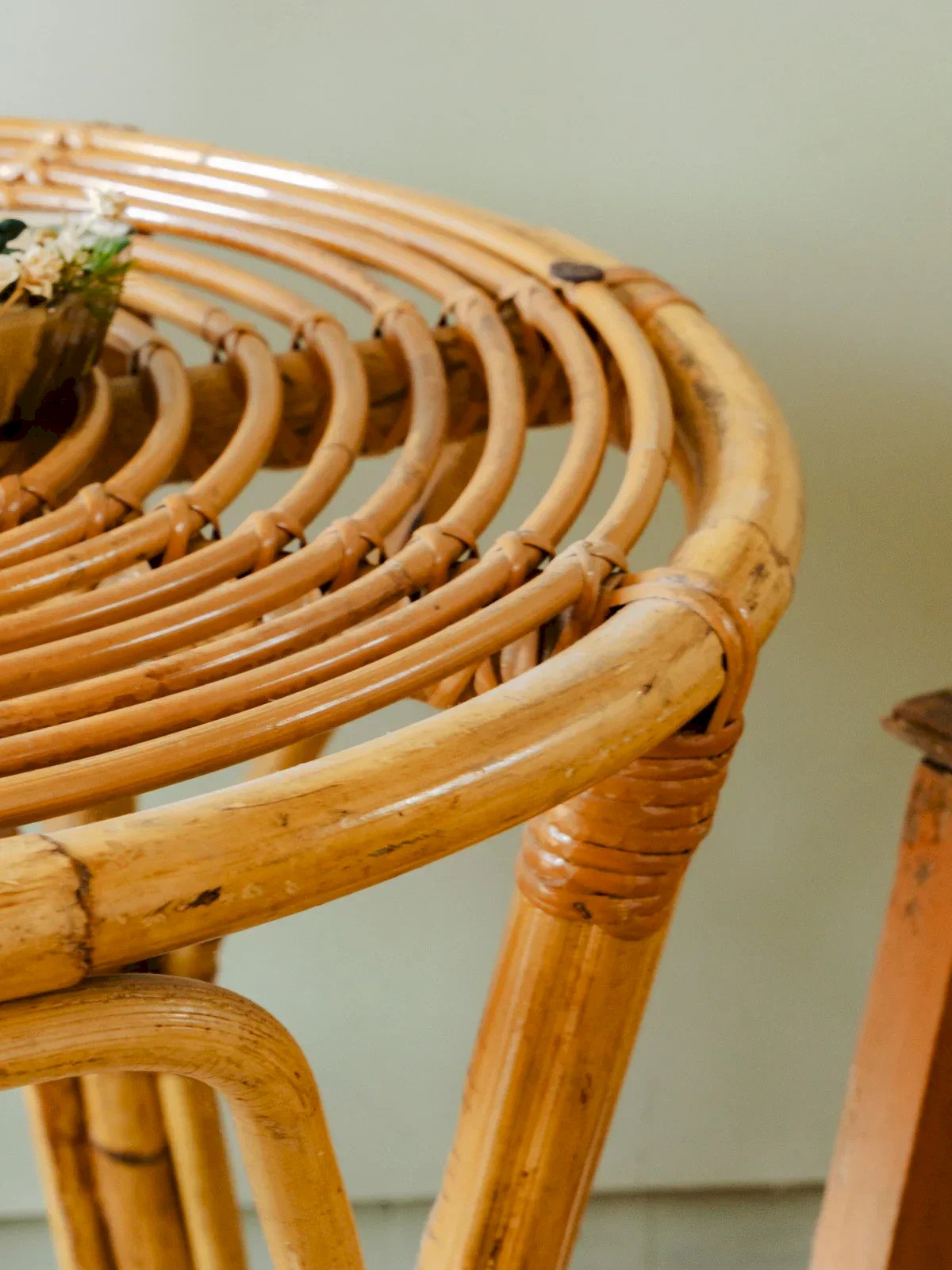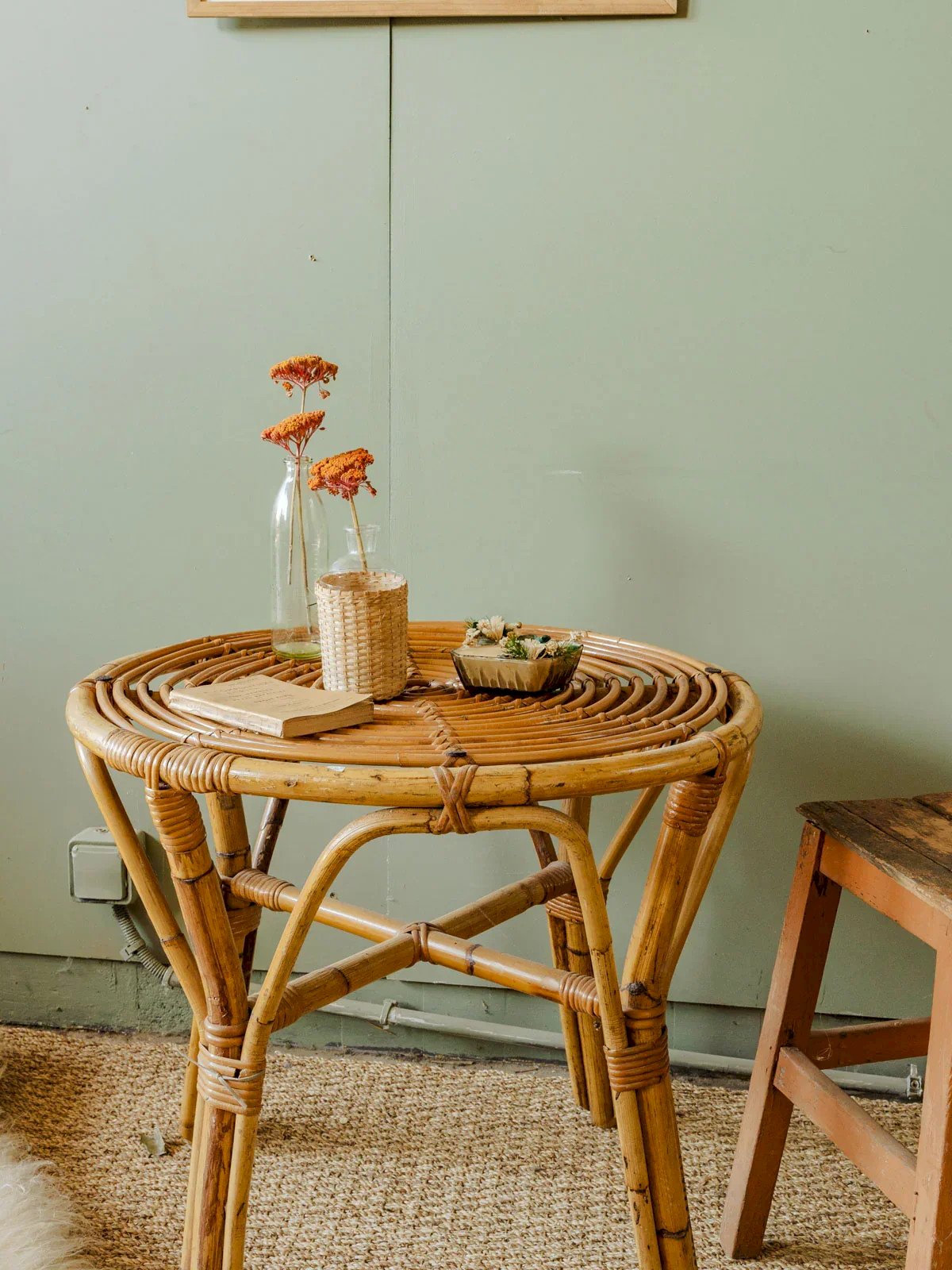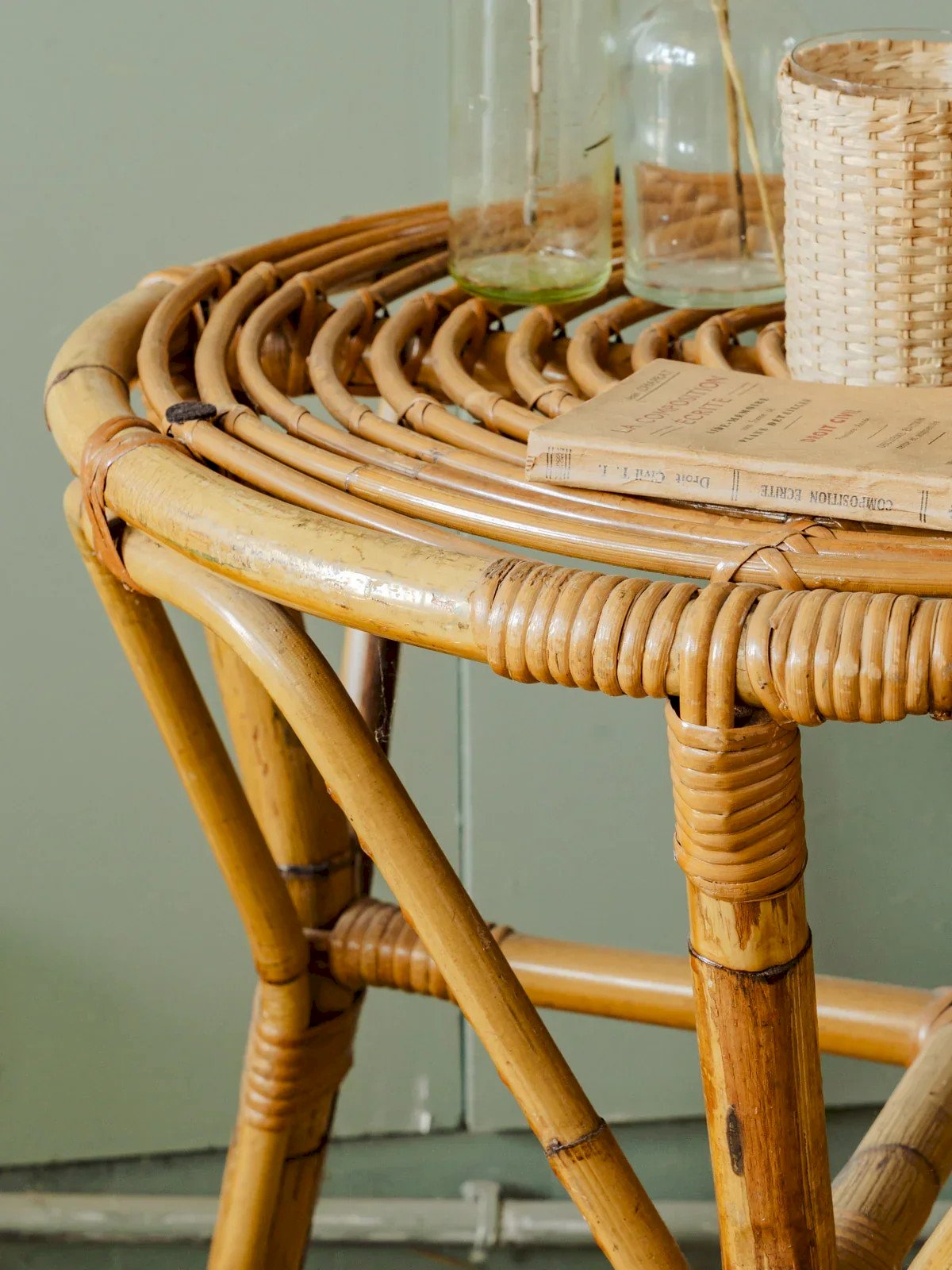 Bring a retro touch to your decor with this vintage rattan table, perfect for small spaces. It easily fits into your living room or on your terrace. Its top offers a practical surface for your drinks or favorite books. A must-have for enthusiasts of authentic and warm style. Height: 56 cm Diameter: 60 cm Condition: Used: Item has been used. Item shows some signs of superficial wear... Used: Item has been used. Item shows some signs of superficial wear, fully operational and functioning correctly. It may be a display model or an item returned to the store after a short period of use. Possible imperfections. Brand: Debongout Type: Curated product Material: Rattan Style: Country Customized: Coffee tables.