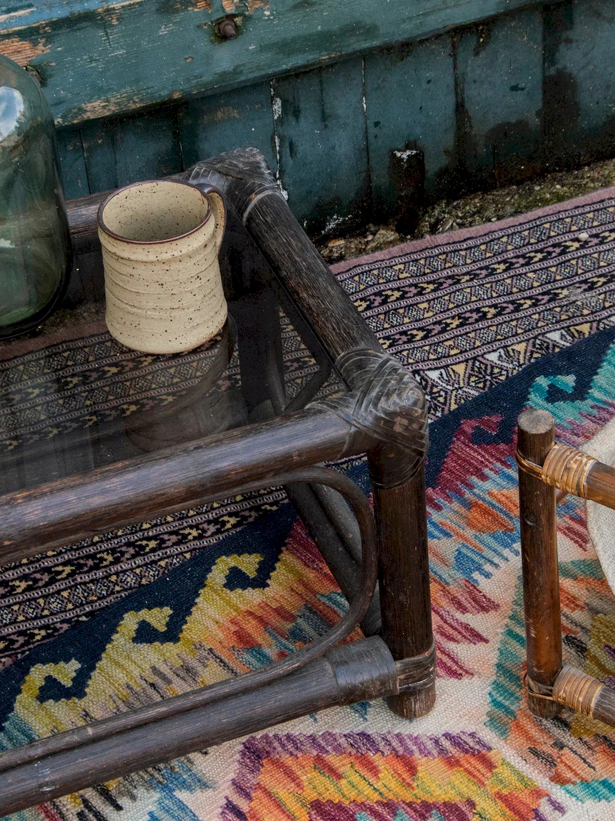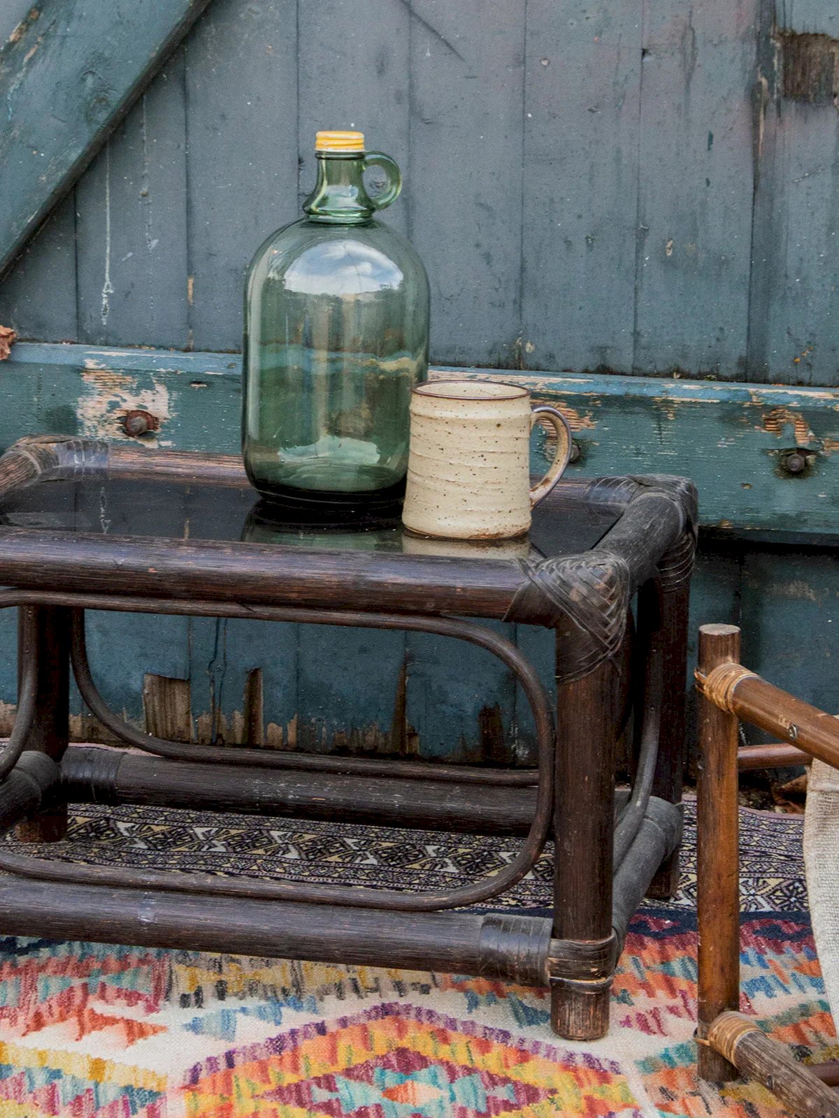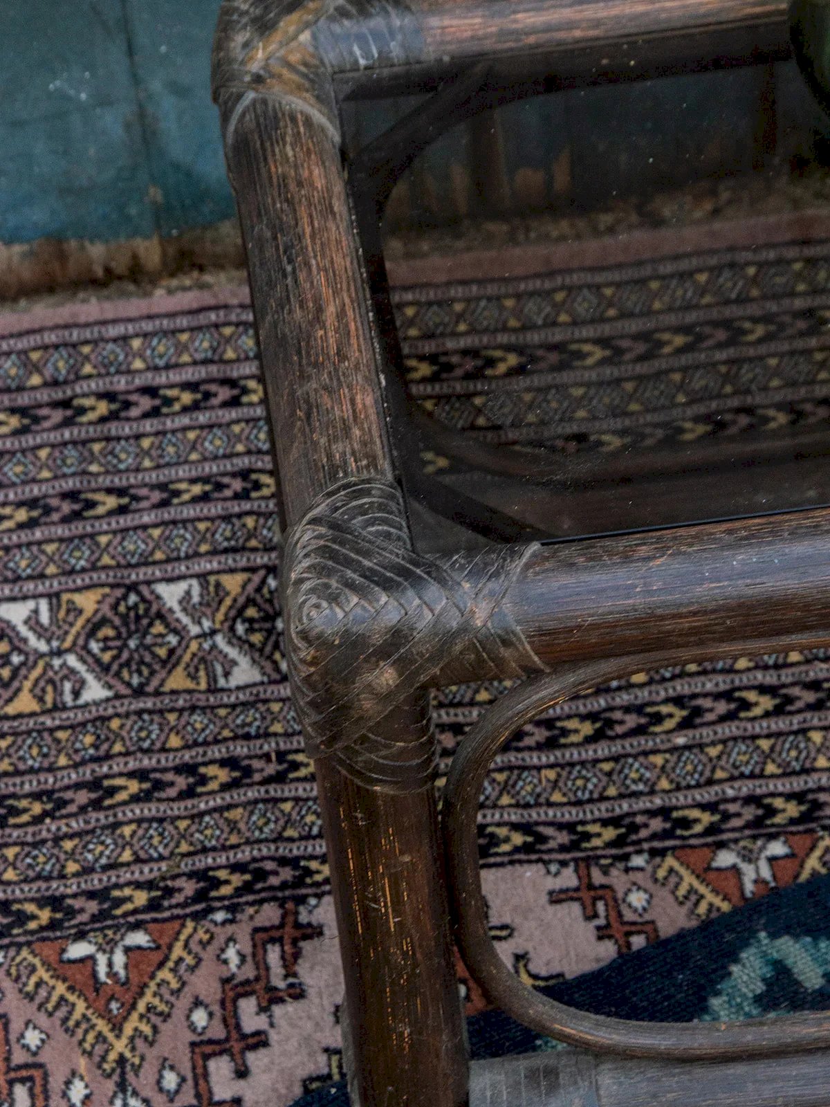 Bring a touch of elegance to your living room with the dark glass and rattan coffee table. Its sleek and contemporary design combines the transparency of glass with the natural warmth of rattan, creating a perfect balance between style and functionality. Ideal for moments of relaxation, it harmoniously blends with all types of decor. Enjoy a friendly space while adding a refined note to your interior. Length: 50 cm Width: 36 cm Height: 31 cm Condition: Used: Item has been used. Item showing some superficial wear marks, ... Used: Item has been used. Item showing some superficial wear marks, fully operational and functioning correctly. It may be a demonstration model or an item returned to the store after a short period of use. Any imperfections. Brand: Debongout Type: Vintage product Material: Rattan, Glass Style: Country Custom: Coffee tables.