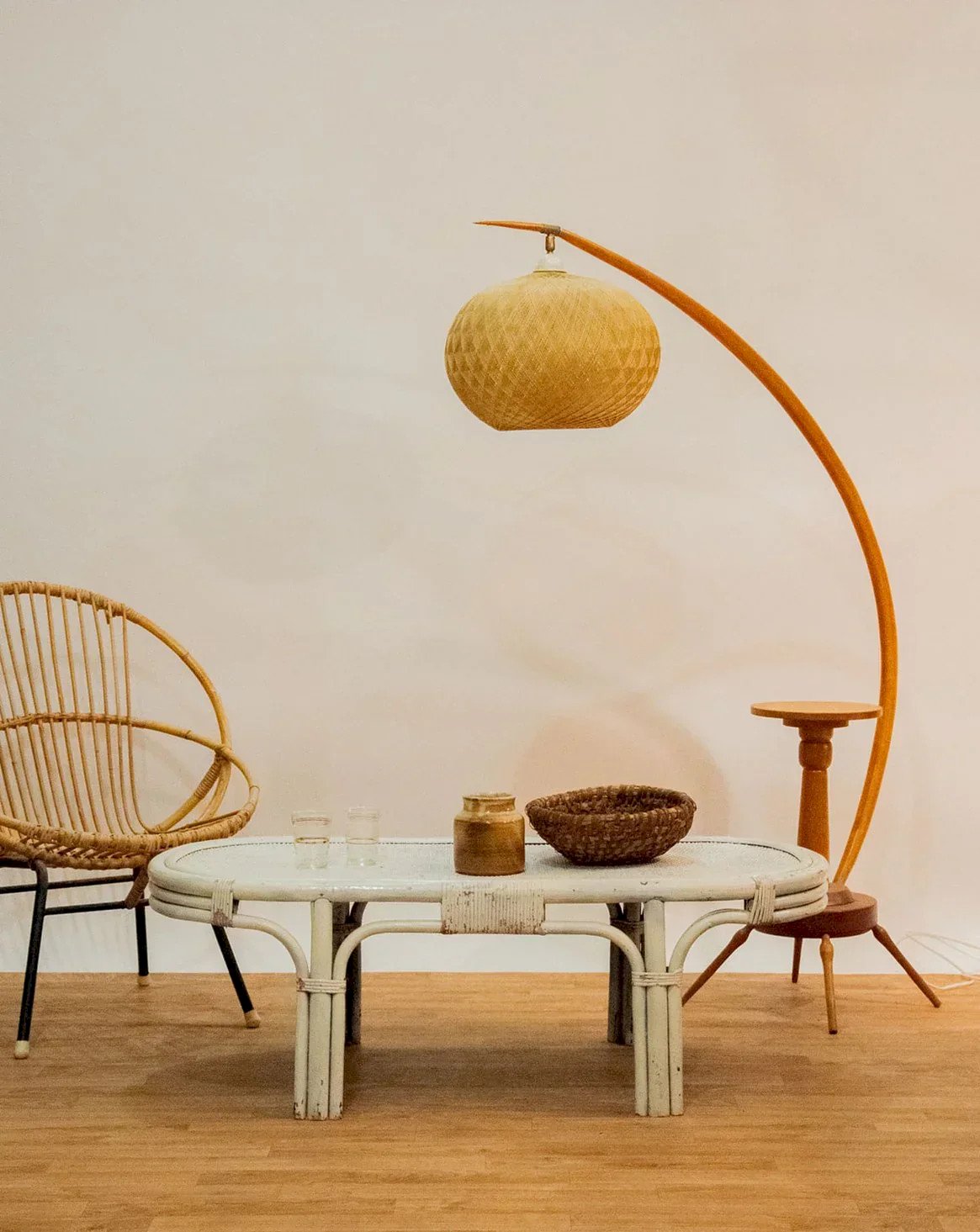 This oval coffee table made of white rattan and wicker combines lightness and natural elegance. Its slightly undulating top creates an original and refined visual effect. Perfect for a living room, it fits into bohemian, Scandinavian, or contemporary interiors. Its lightweight structure ensures both stability and practicality. A decorative piece that brings charm, softness, and personality to your space. Length: 107 cm Width: 52 cm Height: 35 cm Condition: Used: Item has been used. Item shows some signs of superficial wear, ...Used: Item has been used. Item shows some signs of superficial wear, fully operational and functioning correctly. It may be a demonstration model or an item returned to the store after a short period of use. possible imperfections. Brand: Debongout Type: Vintage product Material: Rattan, Wicker Style: Country Custom: Coffee tables