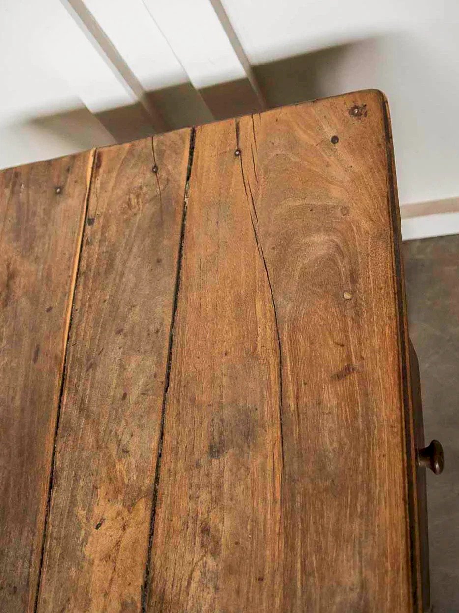 Compact dark wood coffee table with a simple and warm style, ideal for an intimate living room. The curved top highlights its unique character and provides a welcoming surface for magazines, cups, and decorative items. A discreet drawer offers practical storage; the drawer front panel is diagonally damaged, but it remains fully functional and stable. Compact size and suitable height to slide in front of a sofa, adding a timeless touch to your interior. Light traces of time that contribute to its charm. Length: 70 cm Width: 51 cm Height: 48 cm Height under the top: 34 cm Drawer height: 6 cm Condition: Used: Item has been used. Item shows some signs of superficial wear, fully operational and functioning correctly. It may be a demonstration model or an item returned to the store after a short period of use. Possible imperfections. Brand: Debongout Type: Vintage product Material: Wood Style: Country Customizable: Coffee tables.