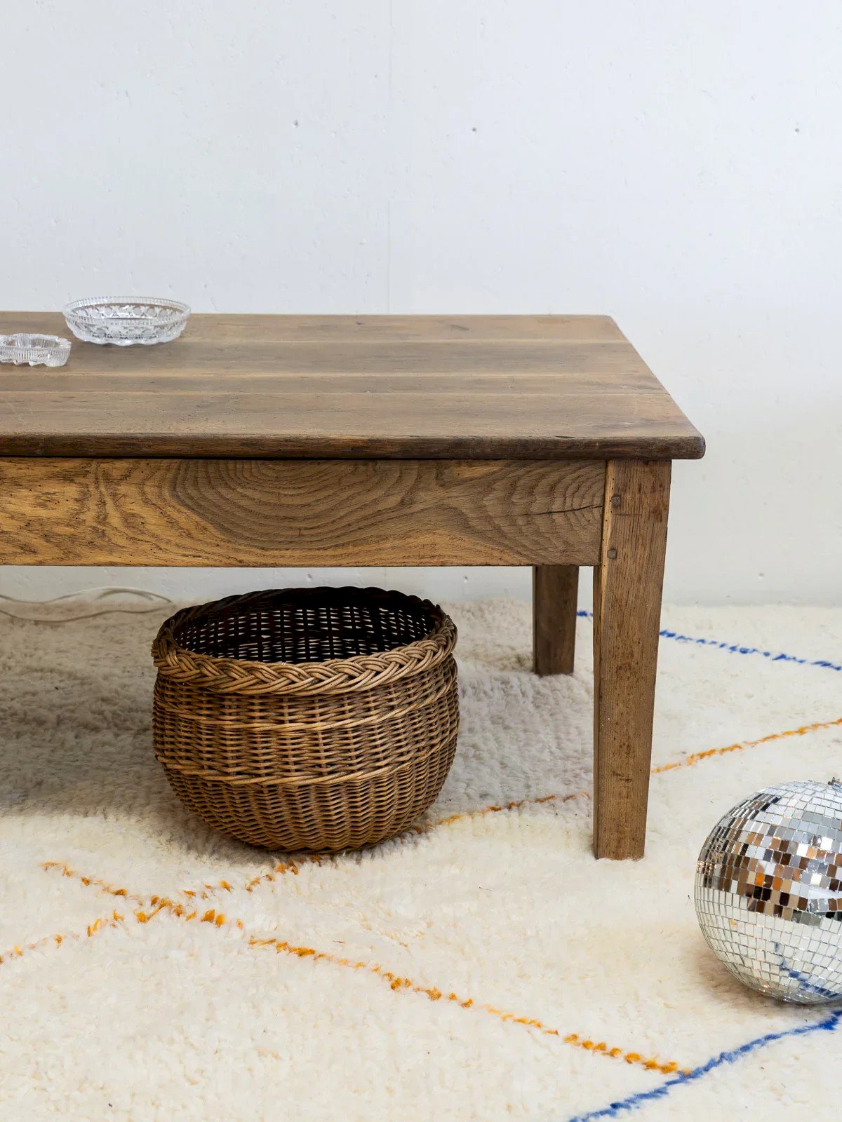 Adopt this oak coffee table with a minimalist design, whose natural hue highlights the wood grain for a discreet and warm presence in your living room. Its proportions provide a generous top for books, objects, and cups, while allowing the space to breathe around the furniture. Its structure invites a friendly and bright atmosphere, easy to match with a contemporary or Scandinavian interior. Some signs of use that add to its authenticity. Length: 99 cm Width: 68 cm Height: 45 cm Condition: Used: Item has been used. Item shows some superficial signs of wear, ... Used: Item has been used. Item shows some superficial signs of wear, fully operational and functioning correctly. It could be a demonstration model or a returned item after a short period of use. Any imperfections. Brand: Debongout Type: Curated product Material: Oak Style: Country Custom: Coffee tables.