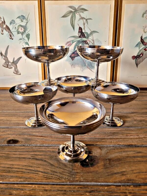 They can also be used for appetizers! For festive tables and desserts that shine both in taste and presentation! The bowls have already been used and show signs of use (see photos), but they remain a chic and elegant vintage set! PS: Never use an abrasive sponge (that’s probably what left marks on the inside of these bowls). ? diameter 10.3 cm x height 8.3 cm. Weight of the 6 bowls: approximately 850 g. L: 10 l: 10 H: 8