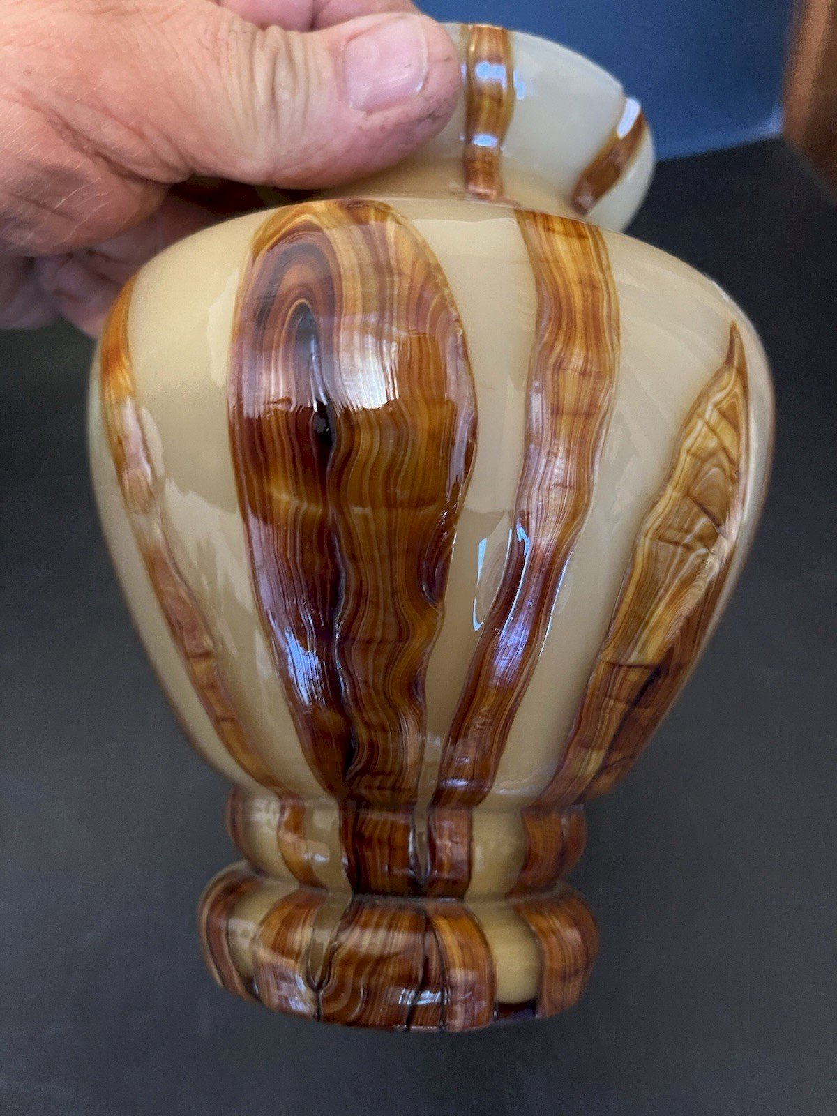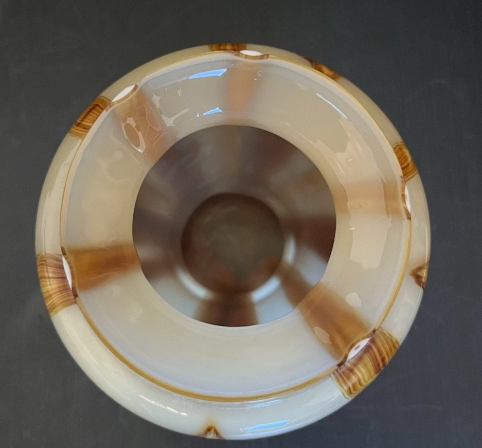 Light brown glass vase with dark brown streaks, a small chip on the neck (see last photo), height 17.50 cm, neck exterior 9 cm, interior 5.50 cm, weight 600 g. Please look at the photos above, which will also serve as a description. Careful and secure packaging via Mondial Relay or with the postal service, to be chosen at the time of your purchase. Thank you all and happy hunting in my shop. Returns accepted within 14 days from receipt, return in its original packaging, in its initial condition; no refund for items returned broken or lost by the carrier, return at the buyer's expense. Don't hesitate to add my shop to your favorites!