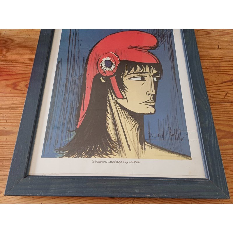 Lithograph by Bernard Buffet "Marianne" Vittel print, framed under glass, Dimensions: 56 cm by 46 cm, Good condition, small tear at the top.
