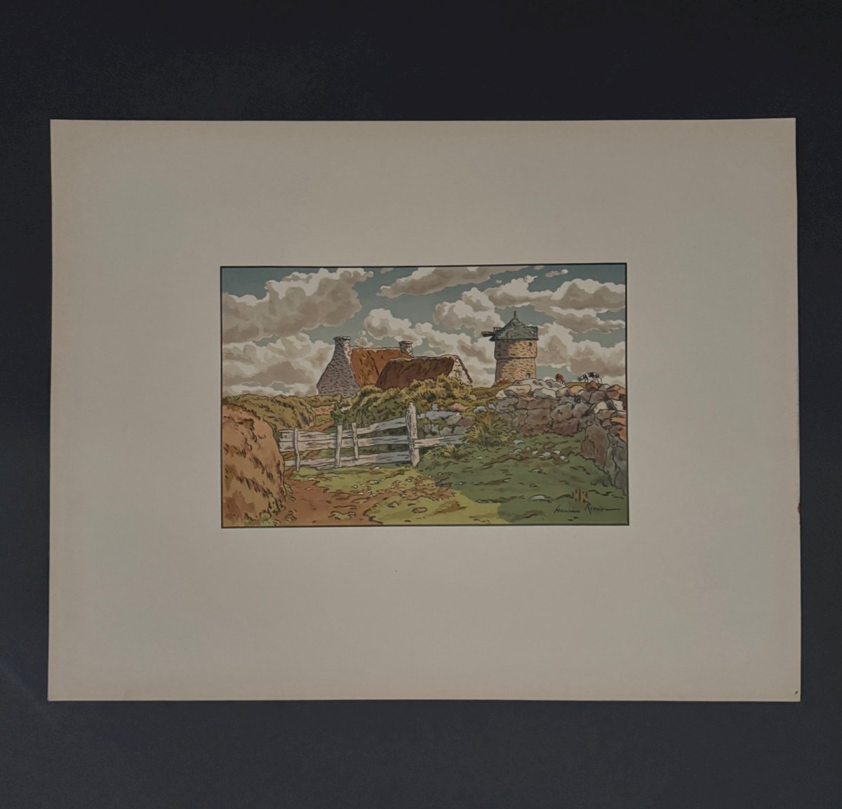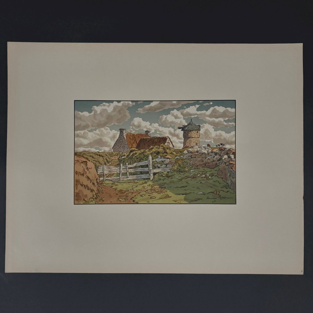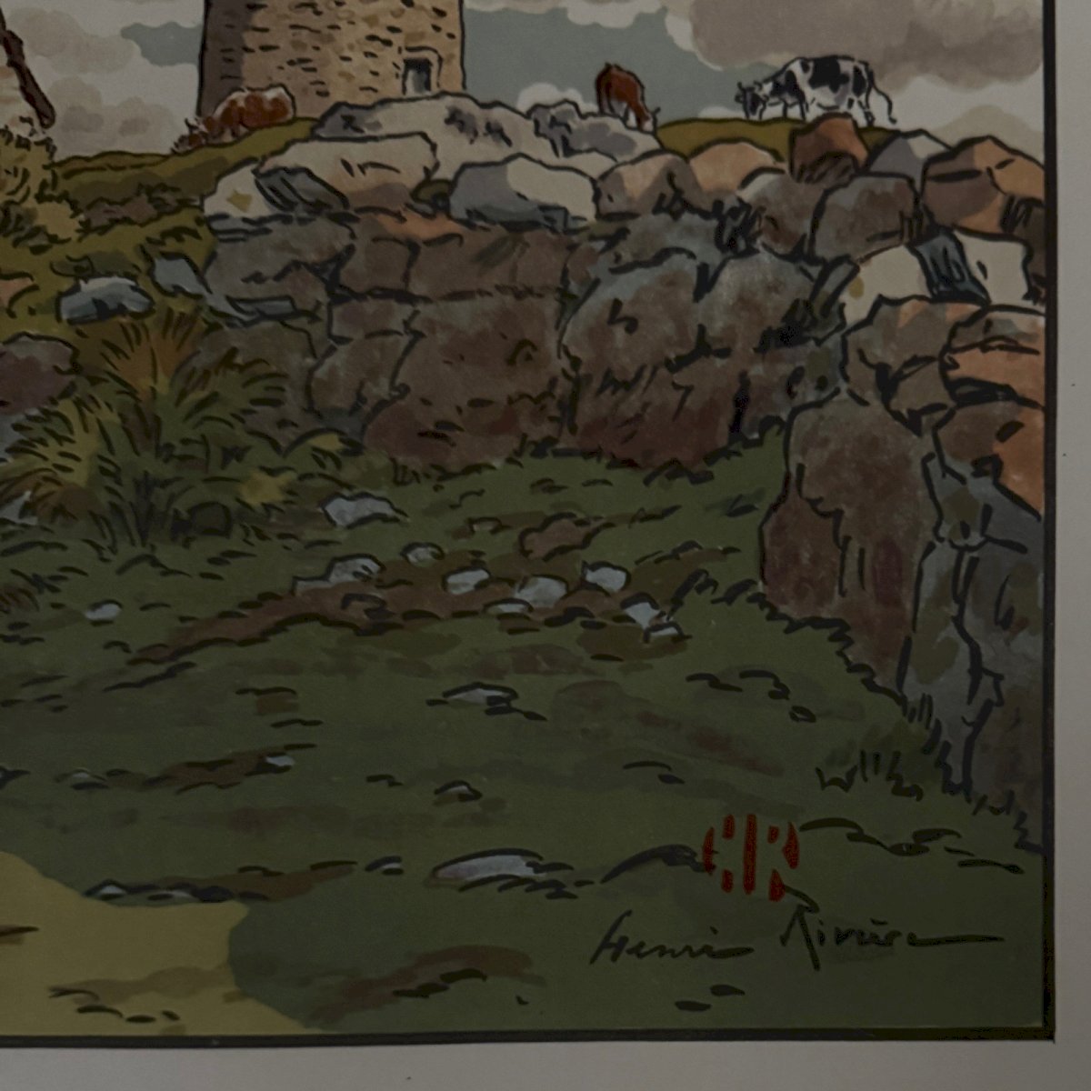 Lithograph by Henri Rivière The Beautiful Country of Brittany - Old Mill in Loguivy A5664 This lithograph “The Beautiful Country of Brittany - Old Mill in Loguivy” is signed by Henri Rivière and has a red stamp in the bottom right corner. The work is authentic and old. In terms of condition, there are signs of folding in the margin, small stains, and ink lines. On the litho, we note small stains in places. The lithograph is very fresh in color; once framed, most defects will be less noticeable. Sold as presented. Henri Rivière (1864-1951) is a French painter, engraver, and illustrator. He began his career with drawing and then etching, specifically using soft-ground etching in 1882. Concurrently, he started a career as a director and set designer in 1886 at the shadow theater in the cabaret du Chat noir, enhancing performances by creating very innovative colored sets. He then dedicated himself exclusively to painting and engraving, establishing himself in the history of etching, printmaking, wood engraving, lithography, and watercolor (he painted about a thousand watercolors). Our numerous photos allow you to appreciate the quality of this lithograph. Please take a close look at the photos. Do not hesitate to zoom in. The photos are an integral part of the description. Dimensions: Height: 50.5 cm Width: 64.7 cm Work Height: 23 cm Width: 35.2 cm S: AZ4ERDB6 I remain at your disposal for any questions. Authenticity: Unknown Type: Lithograph Support: On paper Height: 50.5 cm Features: Signed Theme: Landscape Width: 64.7 cm