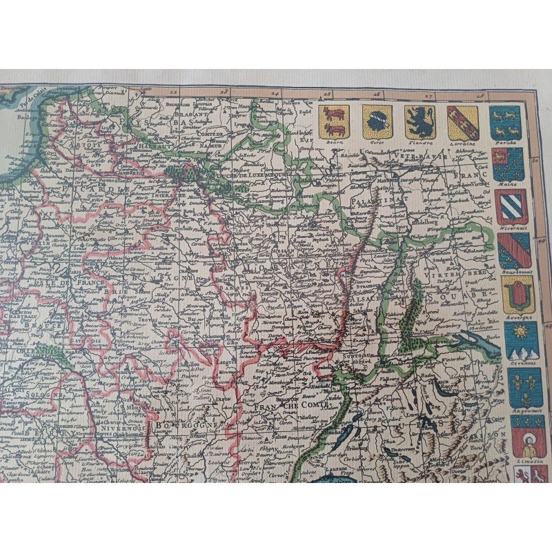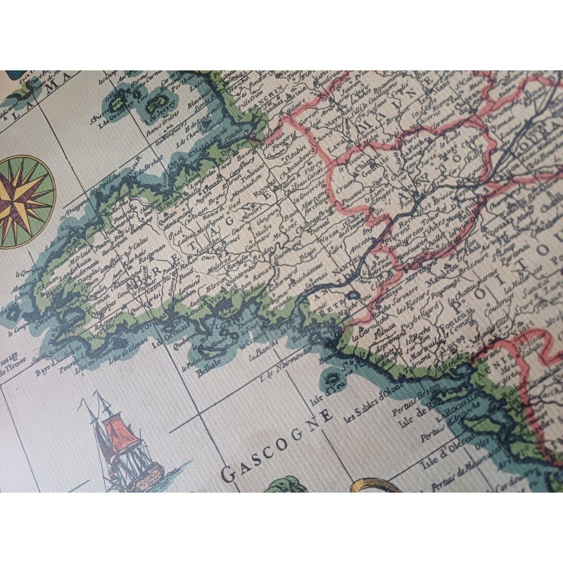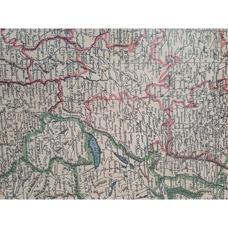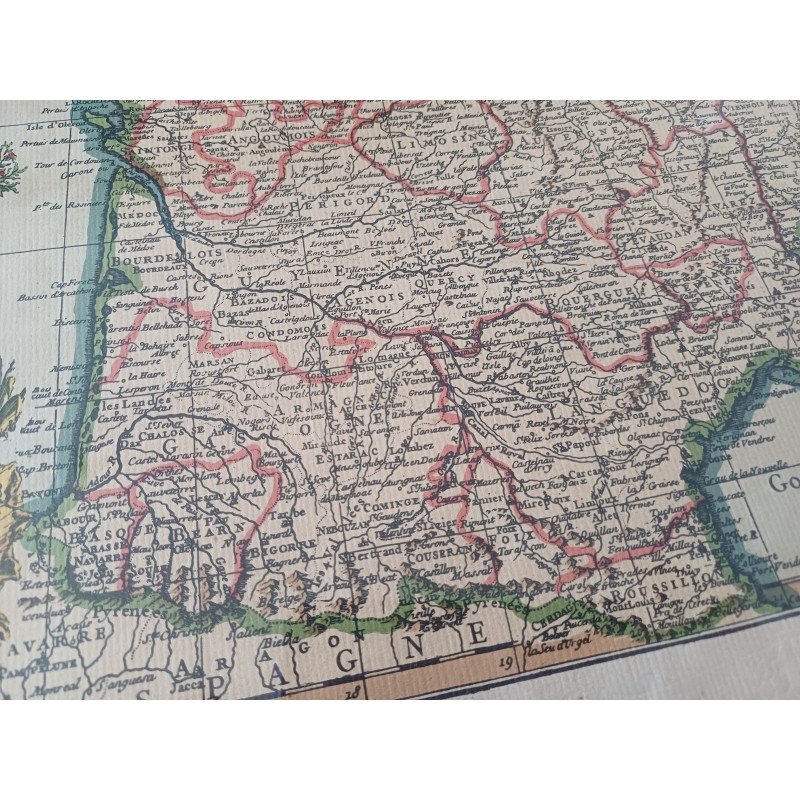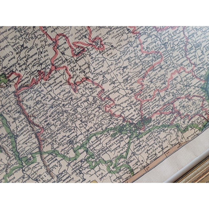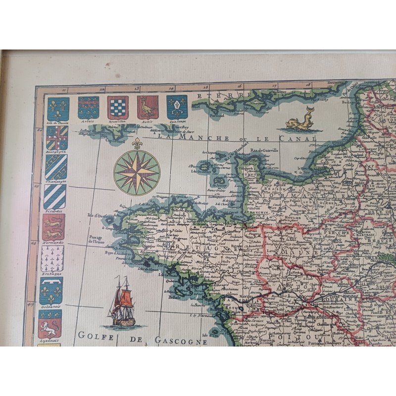 Lithograph Map of France by Ph. Ruache 1745, prepared for the use of the King in April 1721 by Guillaume de l'Isle, framed under glass, Dimensions: 54 cm by 43 cm, very good condition.