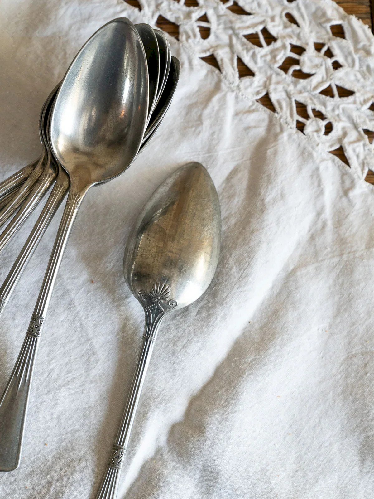 Add a touch of retro elegance to your table with this set of 12 vintage soup spoons made of aged metal. Each piece, carefully designed, reflects a timeless style while offering excellent durability. Their patina finish brings a warm note to your meals, whether with family or friends. Perfect for charmingly serving your soups, salads, or desserts, these spoons are a must-have for vintage decor enthusiasts. Length: 20 cm Condition: Used: Item that has been used. Item showing some superficial signs of wear... Used: Item that has been used. Item showing some superficial signs of wear, fully operational and functioning correctly. It may be a demo model or an item returned to the store after a short period of use, with possible imperfections. Brand: Debongout Type: Thrifted product Material: Metal Style: Country