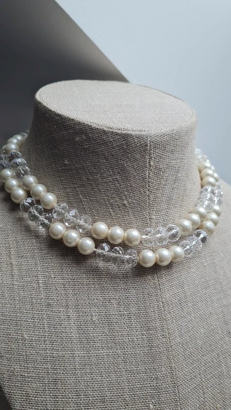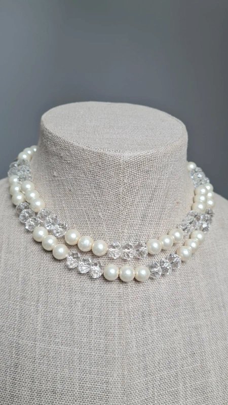 Above €25, please choose your carrier if possible. Take the opportunity to buy in bulk: 5 items -10%, 10 items -20%, 20 items -30%. Please check the photos for imperfections. The faux pearls have some signs of missing nacre. Heavy necklace. Dimensions: width: 1 cm, neck circumference: 91 cm. #necklace #crystalpearls #jewelry #gift #longnecklace #longnecklaces #fauxpearls #giftjewelry...