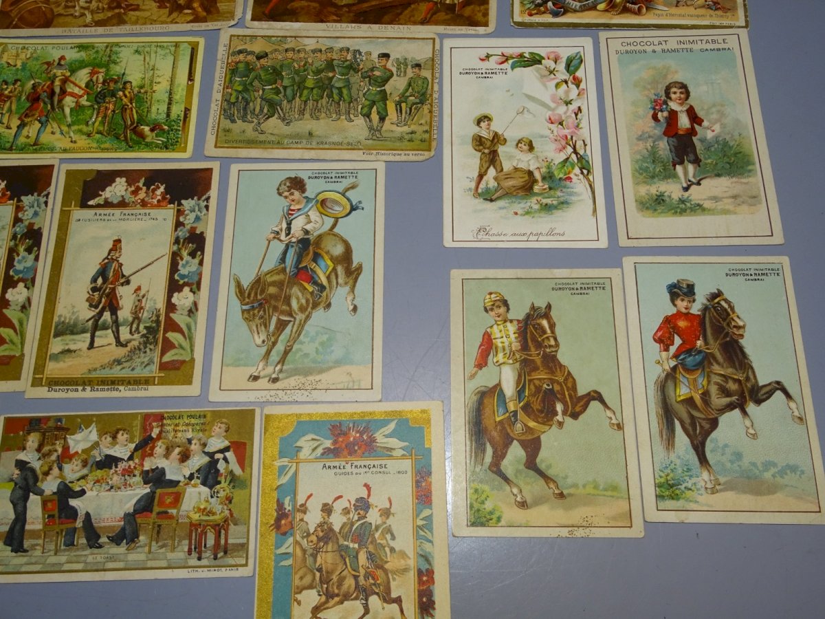 30 cut-out chromos advertisement for Poulain chocolate, Chocolat de Guyenne, Chocolat Duroyon & Ramette + Various - with signs of usage, small wear, small stains (see photos) - condition as found in attic with signs of usage (see photos) - Ref. 1V240718/362 - Largest 9 x 12.2 cm - Smallest Poulain 6.5 x 10.4 cm - Weight 68 g - To contact me my email address: SHIPPING POSSIBLE VIA MONDIAL RELAY or COLISSIMO upon request VERY GOOD PACKAGING GUARANTEED THANK YOU for CHECKING ALL the PHOTOS as THEY ARE AN INTEGRAL PART of the DESCRIPTION and ALLOW to SEE the ITEM AS BEST as POSSIBLE with ITS SMALL POSSIBLE DEFECTS - Condition: Used: Item that has been used. Please refer to the seller's description for more details... Used: Item that has been used. any possible imperfections.