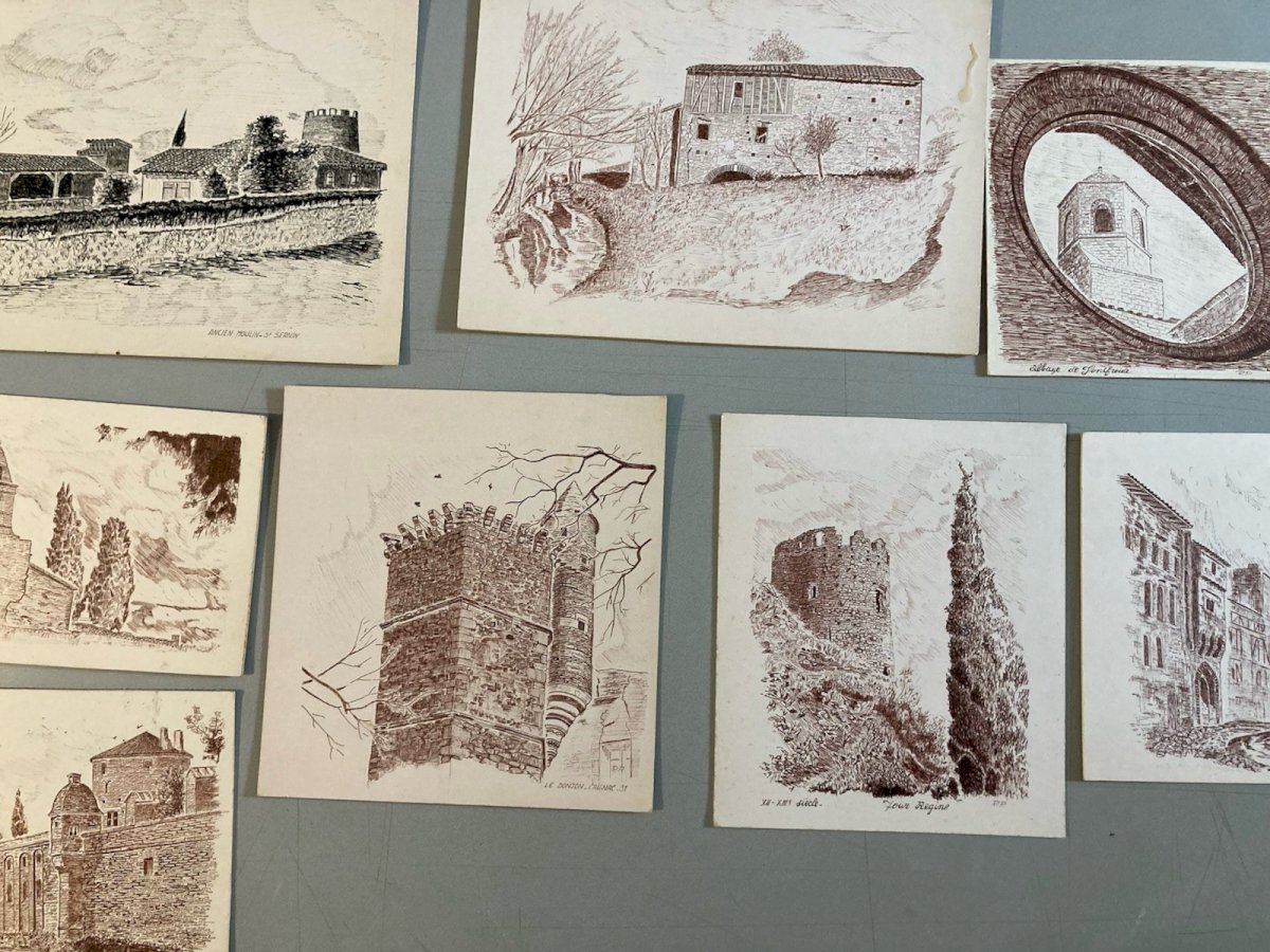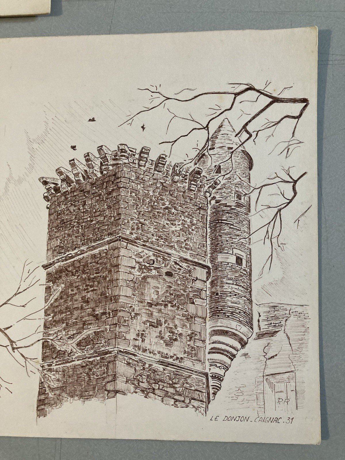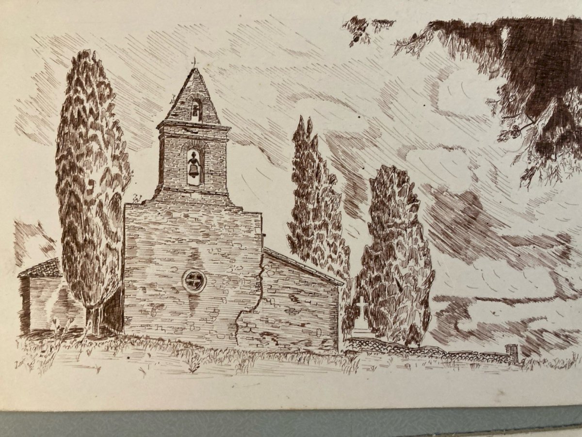 Lot 8 Drawing Ink Church Stone South West France Building Countryside 1970 Art
