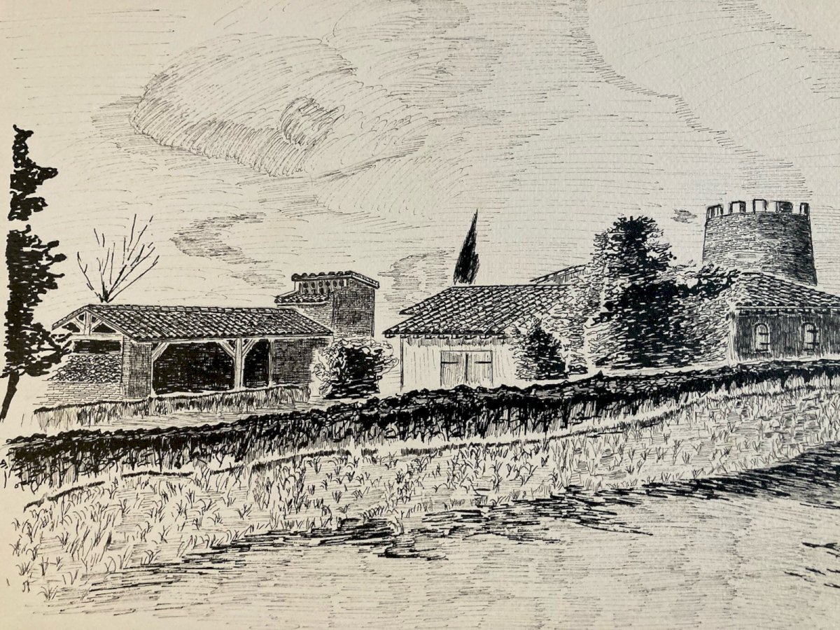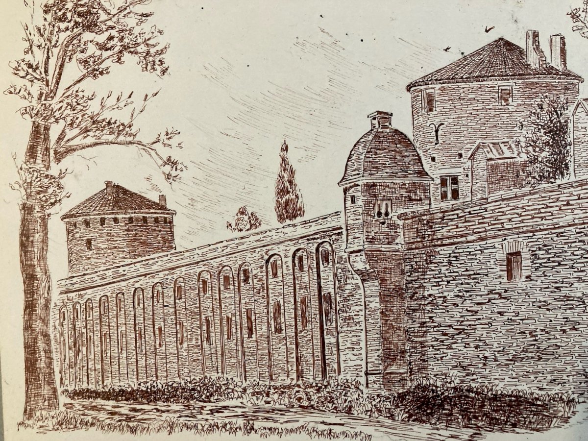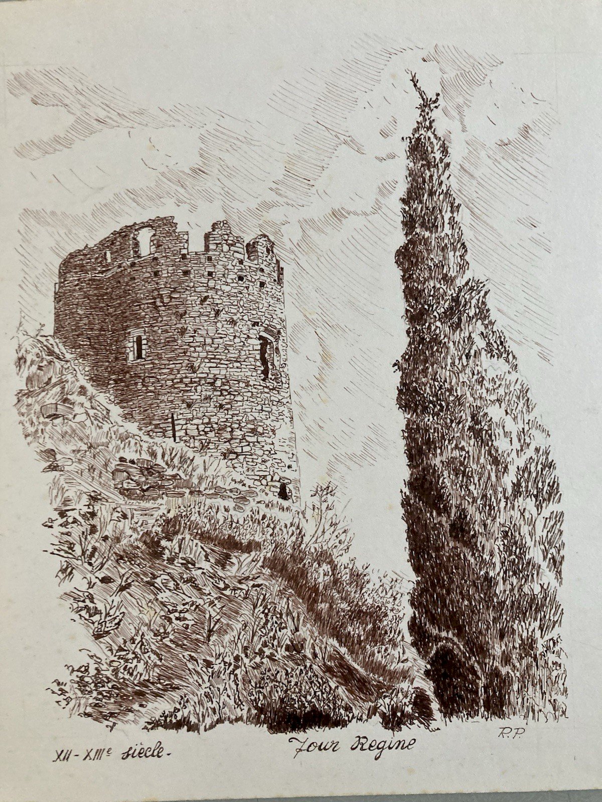 Lot 8 Drawing Ink Church Stone South West France Building Countryside 1970 Art