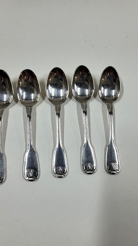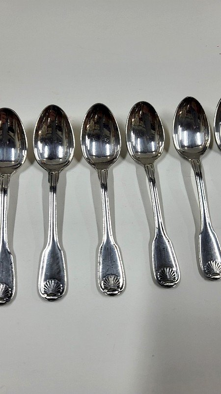 magnificent set of 12 small Christofle mocha spoons in shell model made of silver-plated metal, they are in very good condition measuring 9.9 cm long. Condition: Used. Item has been used. Item shows some superficial signs of wear, fully operational and functioning correctly. It may be a display model or an item returned to the store after a short period of use. Any imperfections. Type: MOCHA SPOONS Brand: CHRISTOFLE Material: SILVER-PLATED Country of origin: Metropolitan France.