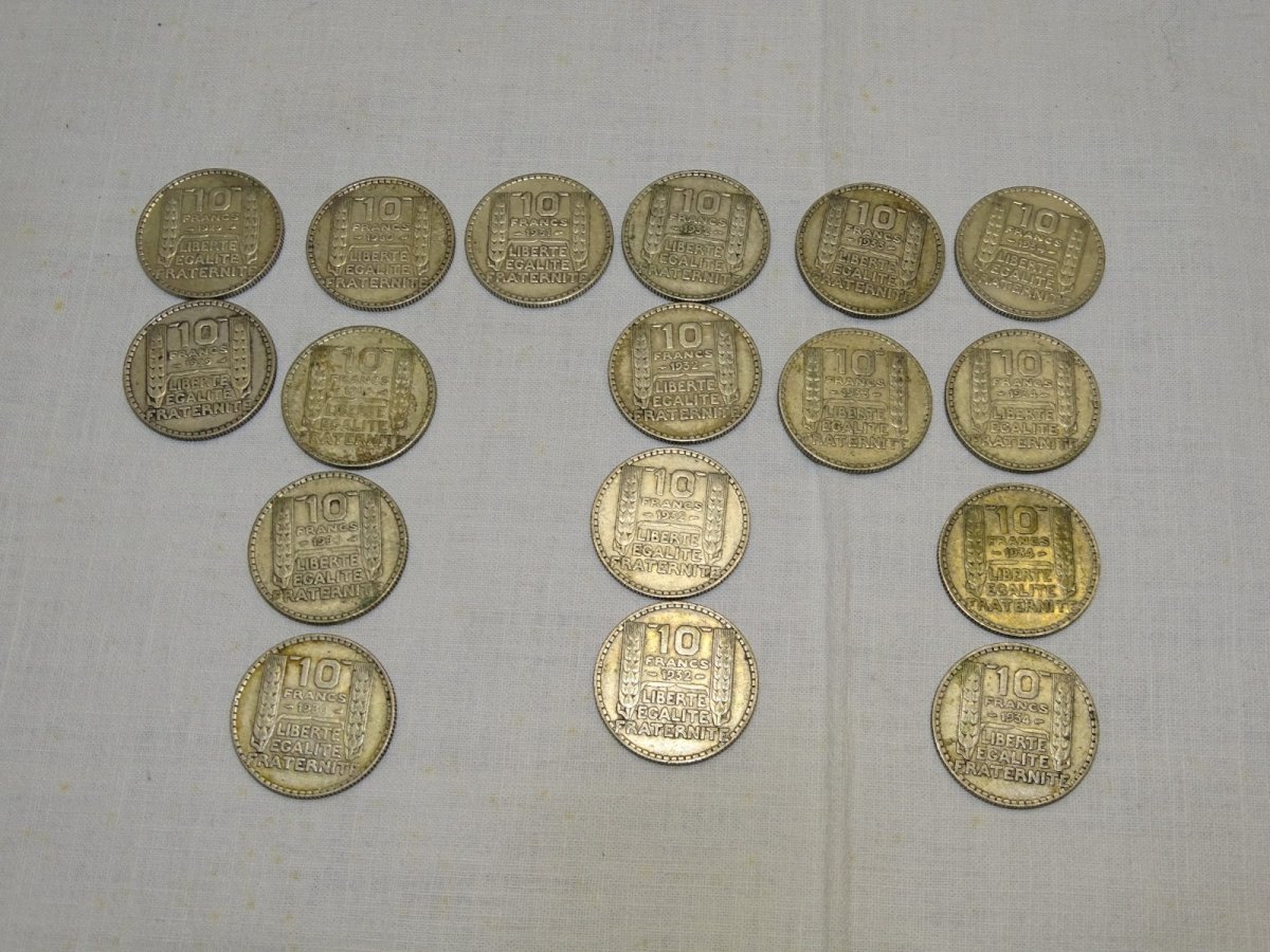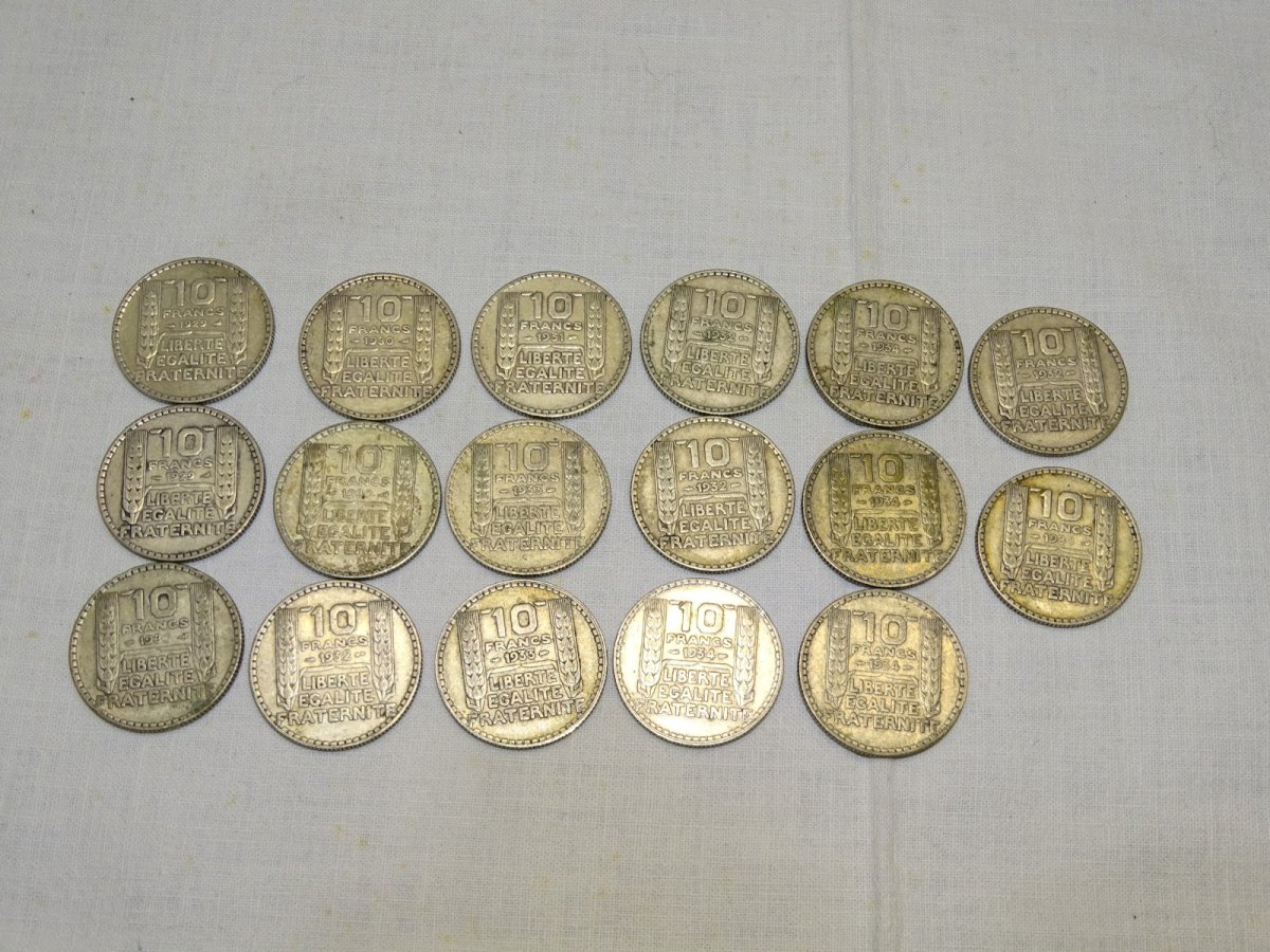 lot of 17 pieces 10 Francs Turin in silver - 2x1929, 4x1930, 1x1931, 4x1932, 2x1933, 1x1934 - in good used condition (see photos) - Ref. 1V240216/228 - Weight 169.54 g - To contact me, my email address: SHIPPING POSSIBLE WITH MONDIAL RELAY or COLISSIMO upon request VERY GOOD PACKAGING GUARANTEED PLEASE LOOK AT ALL the PHOTOS carefully as THEY ARE AN INTEGRAL PART of the DESCRIPTION and ALLOW YOU TO SEE the ITEM TO THE BEST with its POSSIBLE SMALL DEFECTS - Condition: Used: Item has been used. Check the seller's description for more details ... Used: Item has been used. any potential imperfections.