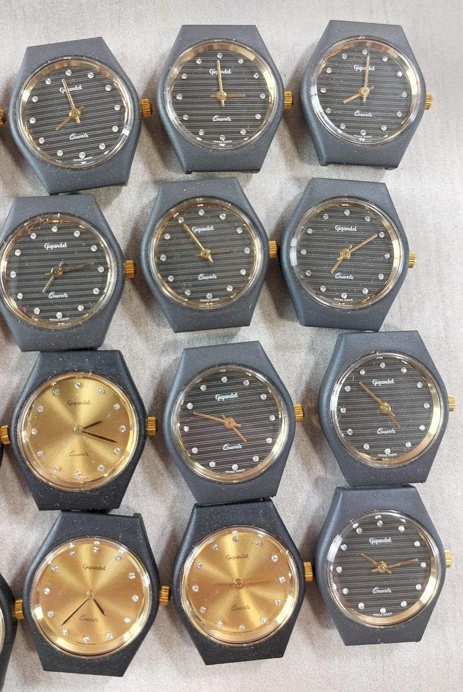 Set of 36 Gigandet Quartz watches, decorated with rhinestones, batteries need to be replaced, width excluding crown 2.5 cm, see photos. Check out my other items! Discount on shipping for combined purchases. Condition: Used - Good condition. This item shows imperfections and visible signs of wear, such as scratches, dents, broken or missing parts. All imperfections must be shown and described in the seller's listing. Type: Wristwatch Brand: Gigandet Movement: Quartz Department: Women's