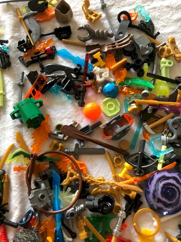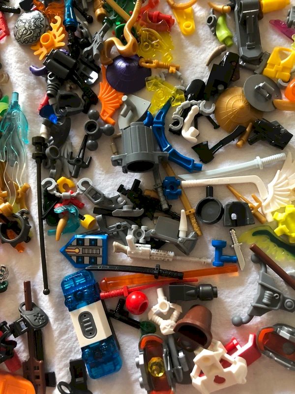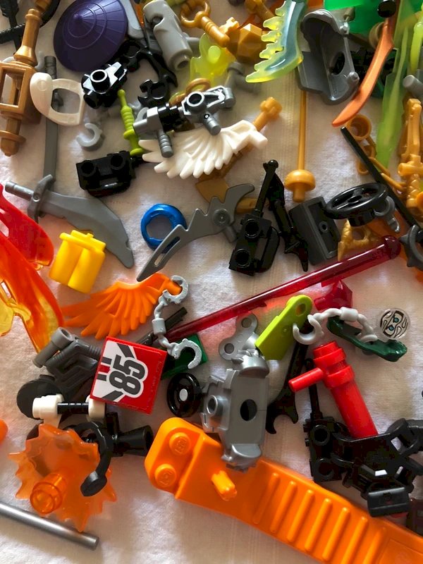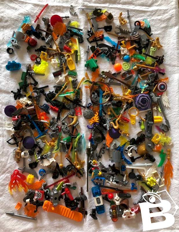 Lot of Lego weapons and accessories in excellent condition Around 500 pieces 99% official Lego (there may be a few Playmobil pieces that I haven't identified)