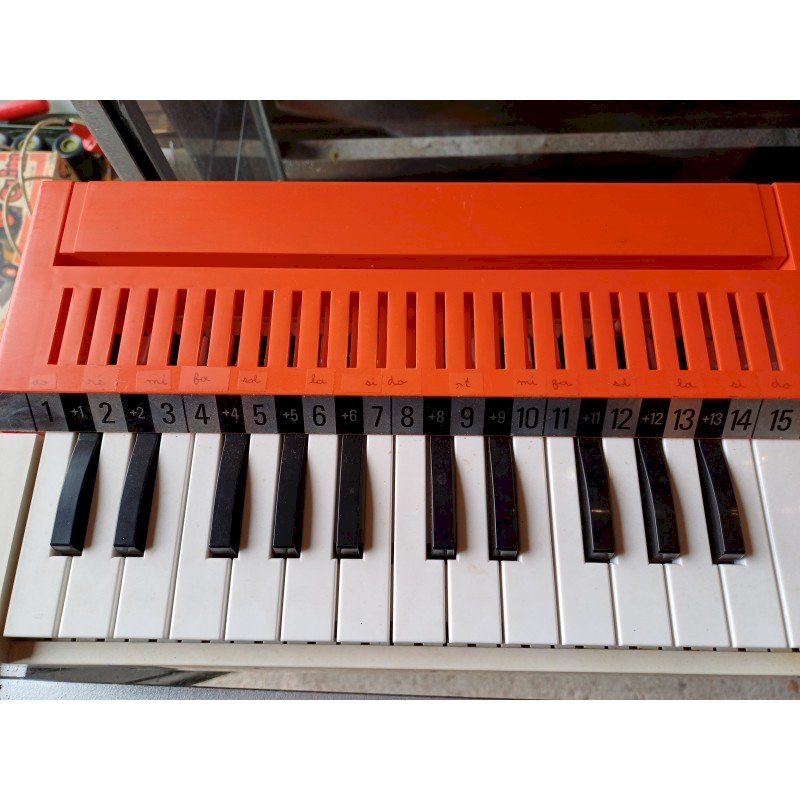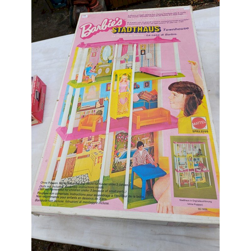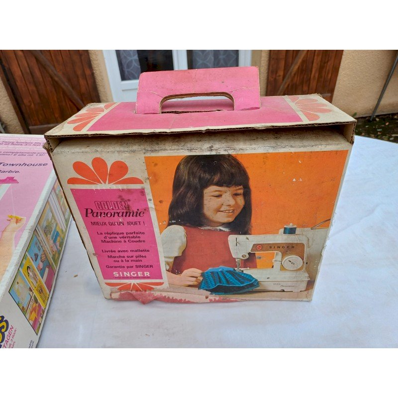 Barbie Mattel House, to assemble, over one meter high, 3 floors, 15 assembly columns, elevator, 2 chairs, sofa, table, bed, 3 background decorations, armchair, 4 floors and ceilings, hooks, 8 clips, 1 cord of 35 cm, complete, Singer sewing machine 67B13, Golden Panoramic, 1970s, plastic, height: 23 cm, length and width: 26 cm by 12 cm, and Bontempi piano.