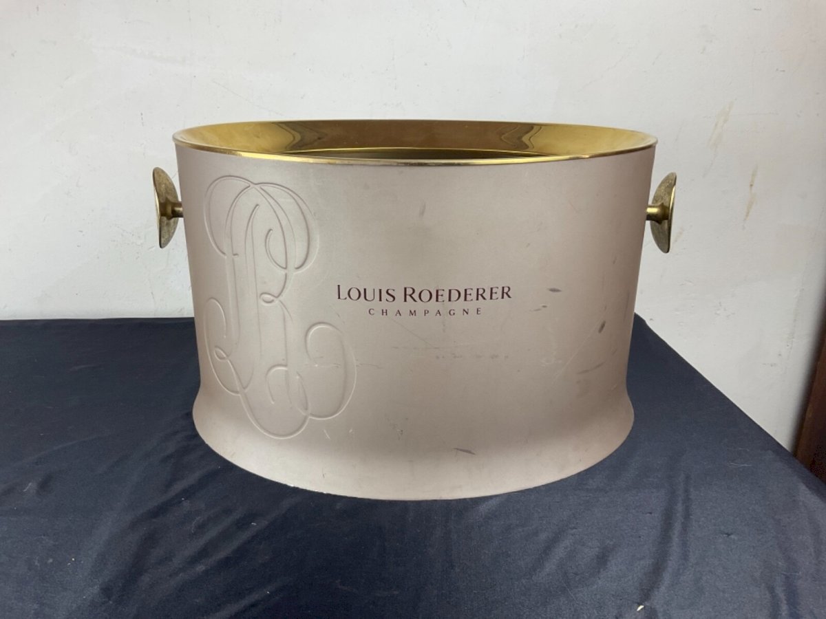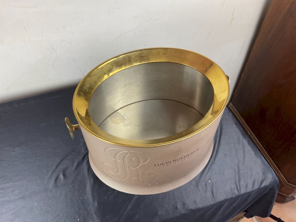 Louis Roederer champagne bucket, vintage metal champagne cooler