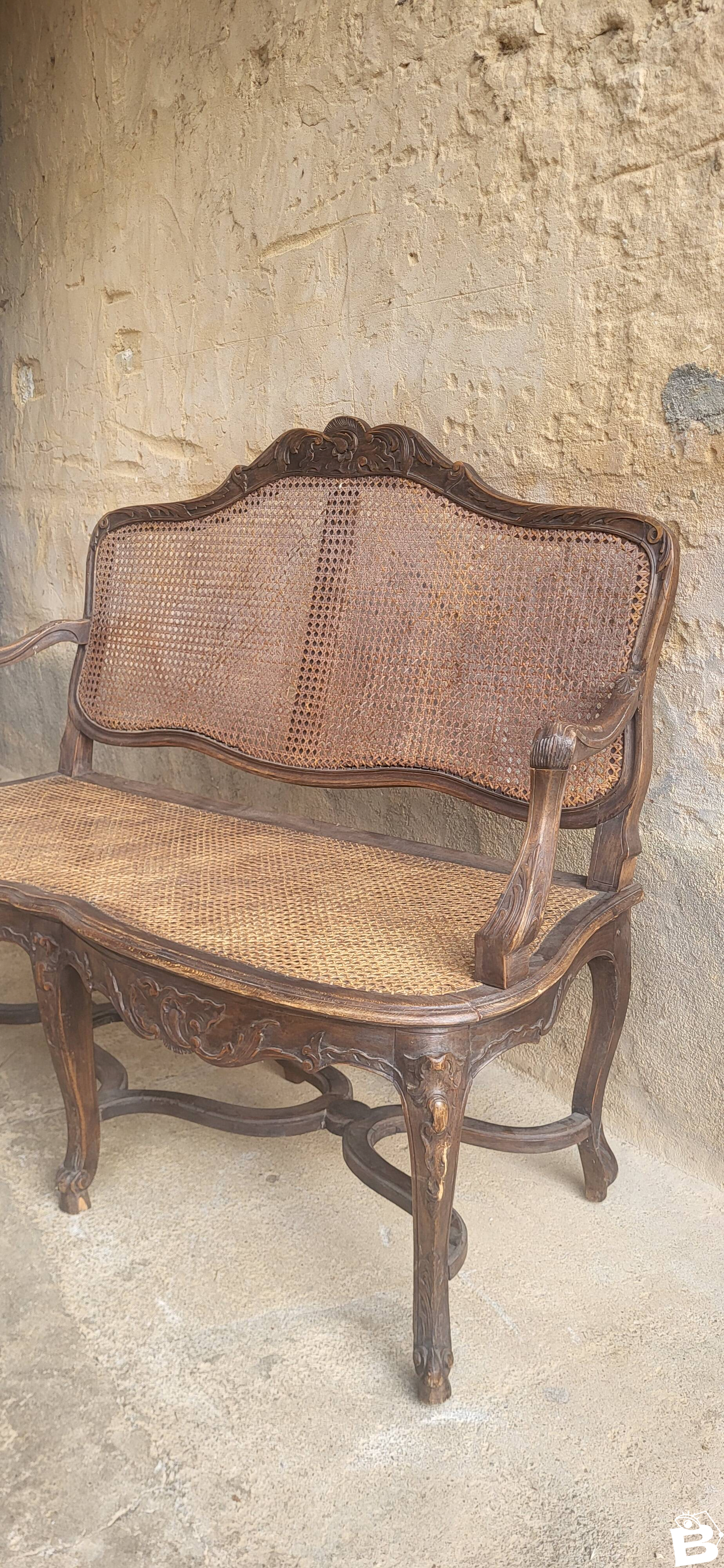 Louis XV cane seat bench, 19th century Classic Brown Wood