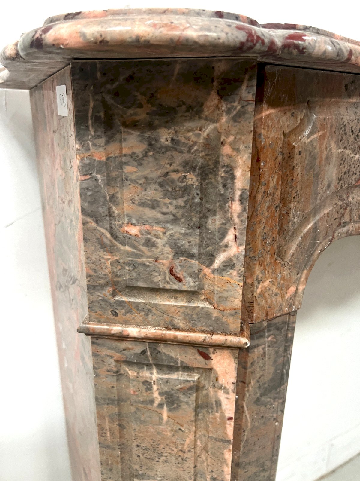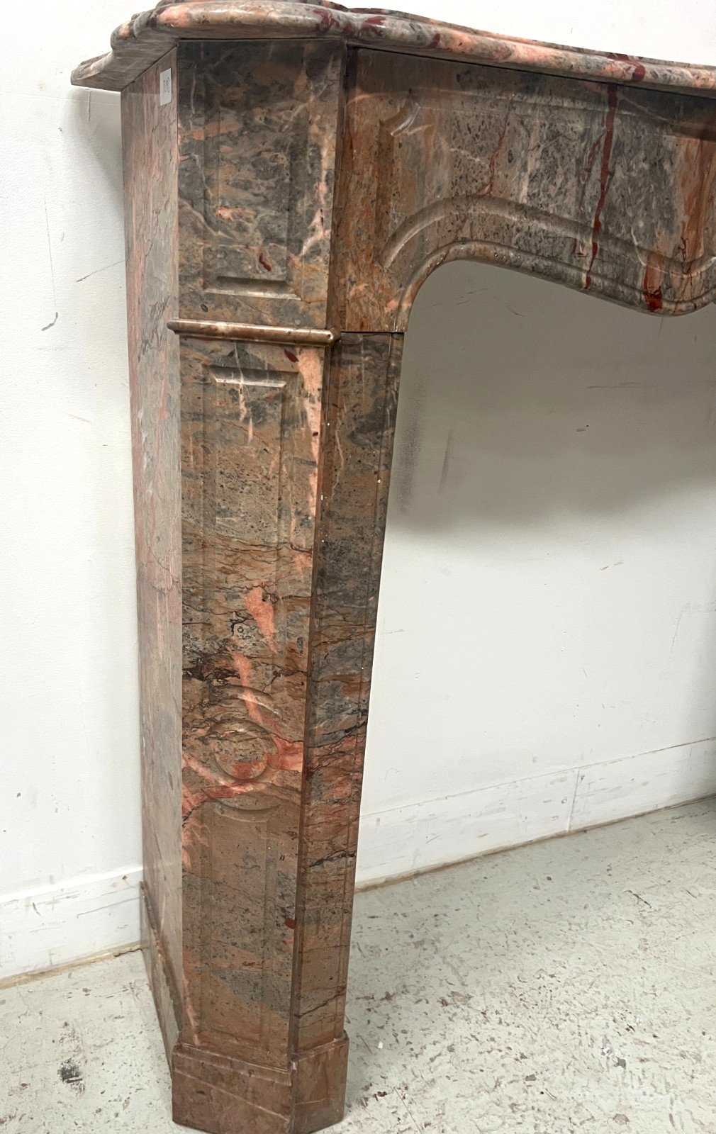 "Pompadour" fireplace in veined pink marble. Column and frieze with recessed flutes in good condition. Fireplace ready to be installed in your interior. Dimensions: H 103 x L 114 x W 34 cm. Hearth: H 86 x W 77 cm. Period: late 19th to early 20th century. Type: Fireplace. Period: 19th century and earlier. Sub-type: Complete fireplace. Country of origin: France. Height: 103 cm. Material: Marble. Style: Napoleon III. Length: 114 cm. Width: 34 cm.