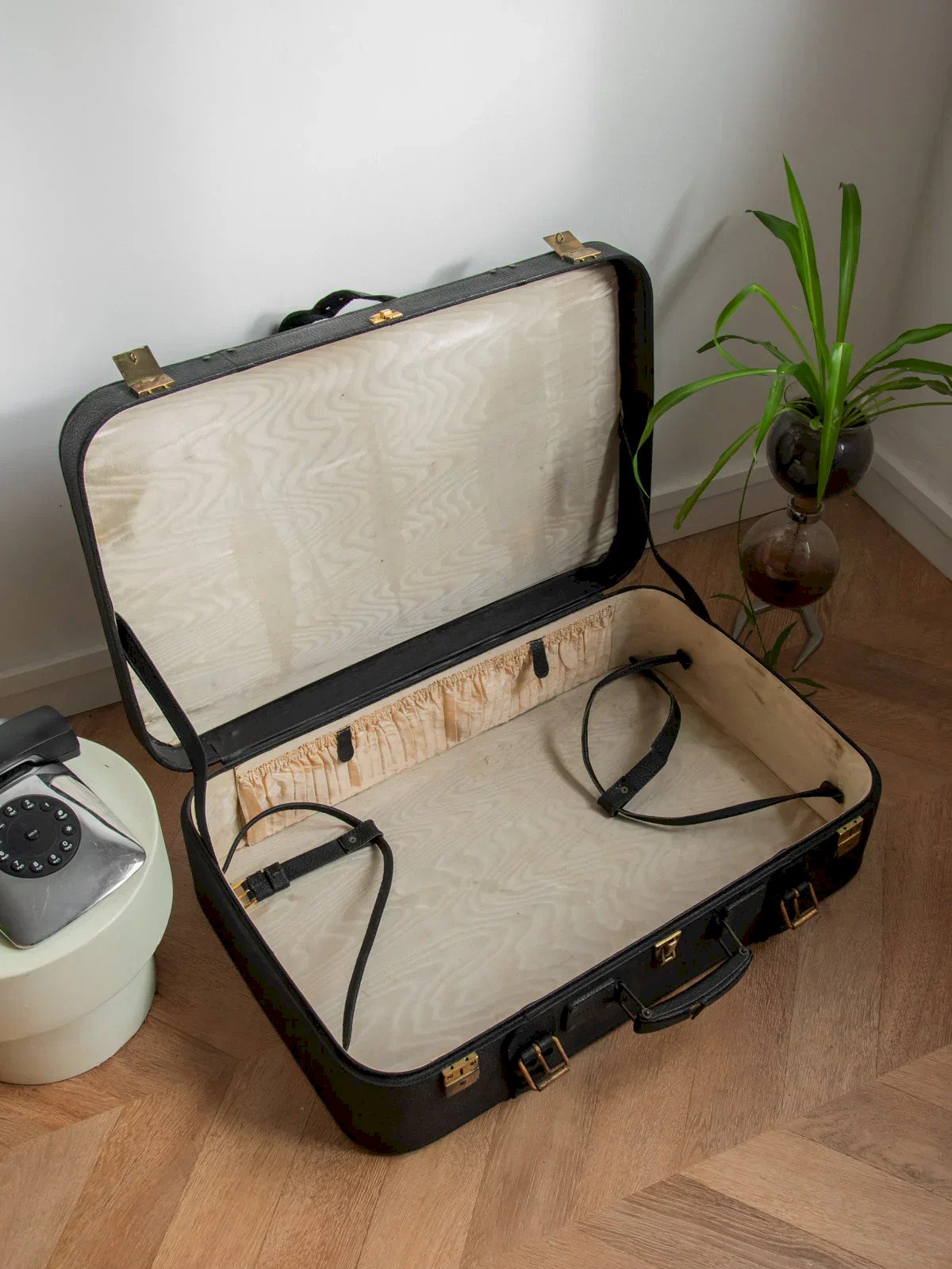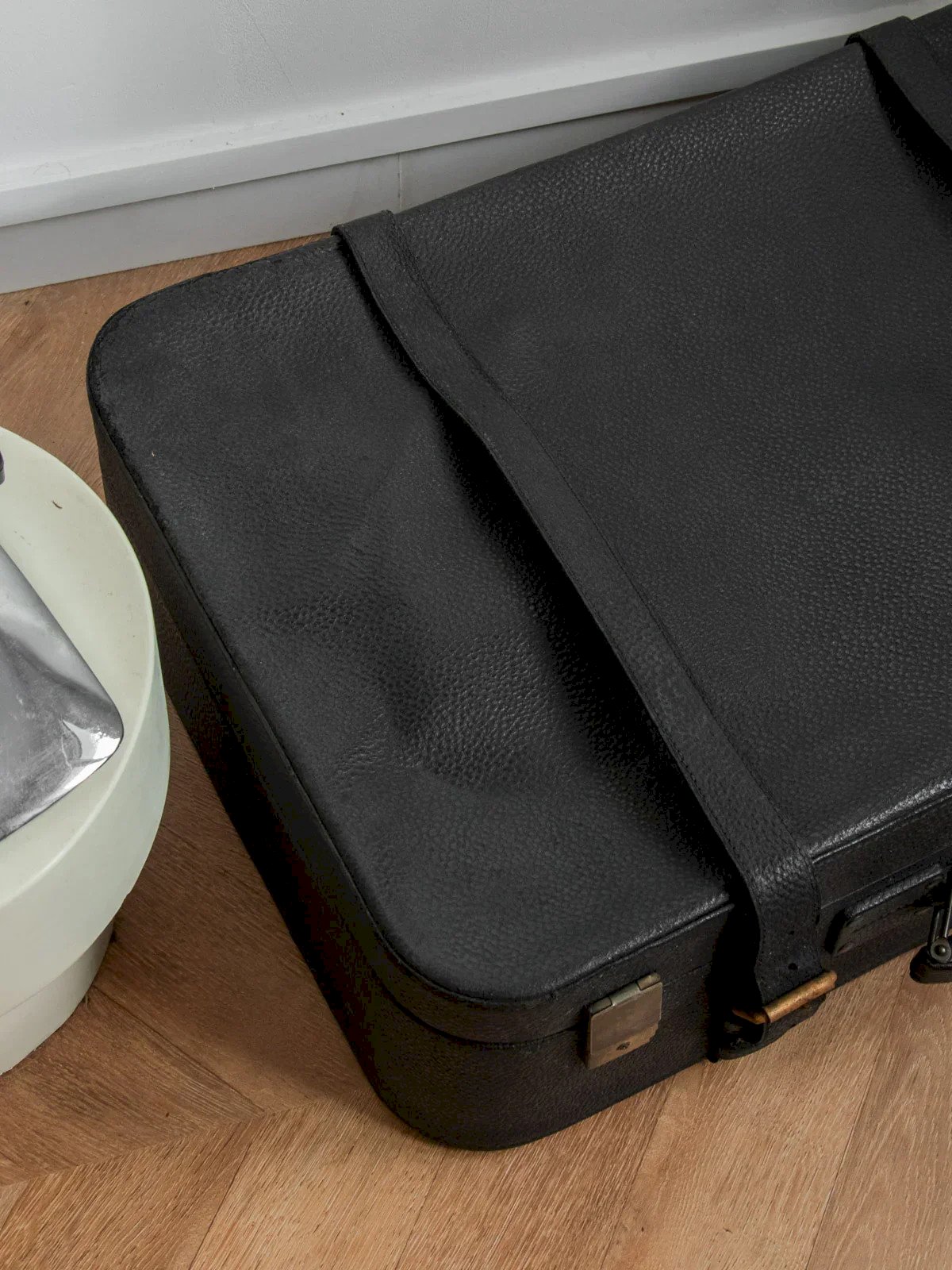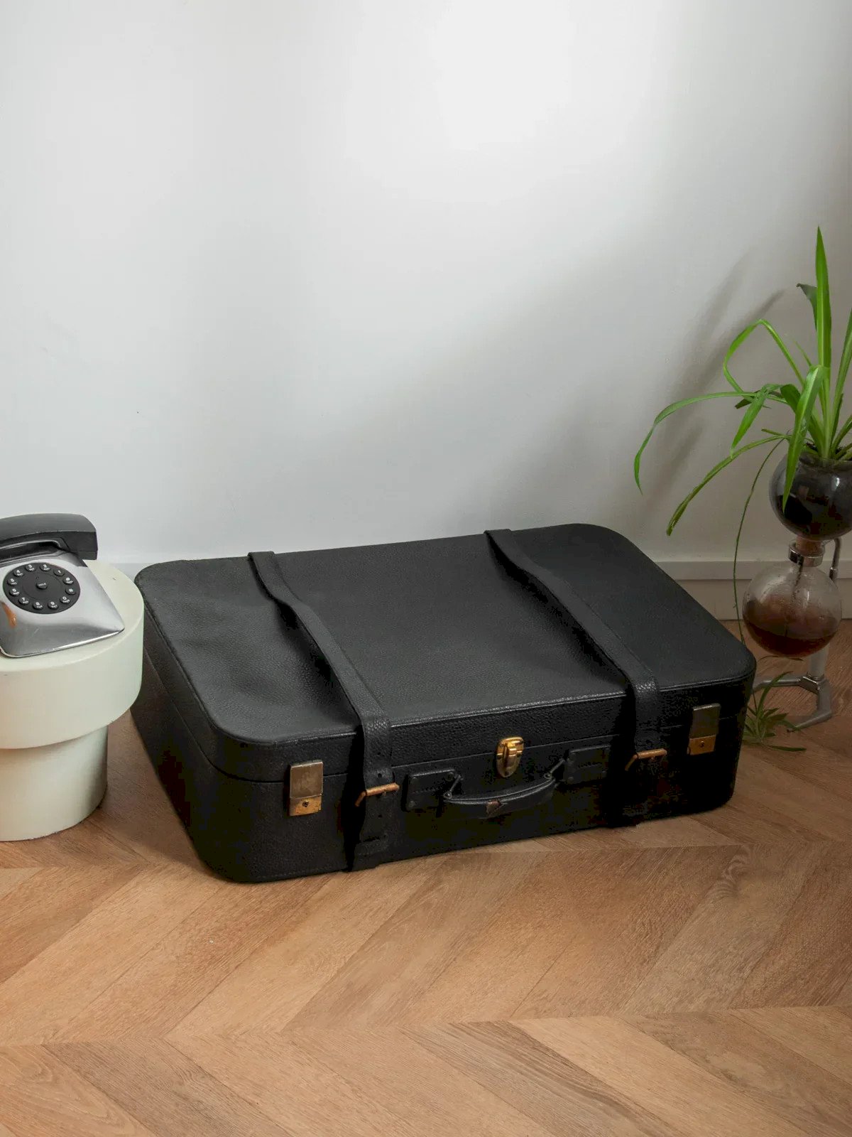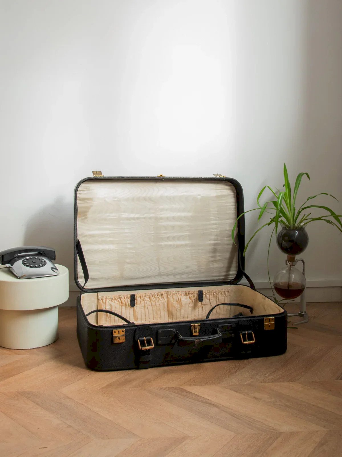 Offer a black faux leather trunk with a sober and refined character, whose structured silhouette adds a graphic touch to your interior. Its generous size allows it to accommodate throws, linens, or bulky items. The black covering provides an elegant presence, easy to integrate into a living room, bedroom, or entryway, and its simple maintenance makes it a practical companion for everyday use. Length: 77 cm Width: 44 cm Height: 19 cm A brief history of the trunk One of the oldest known trunks dates back to the golden age of Egyptian pharaohs. Many chests were indeed found in the tomb of Tutankhamun. Even the Greeks and Romans used them for all important journeys. At that time, the trunk was a wooden and bronze chest, sometimes decorated with ivory and precious metal ornaments. The lid was flat to allow the stacking of trunks in the means of transportation used. At the discovery of America in 1492, trunks filled with all the new fruits and products from the New World crossed the ocean to reach the Old World. The industrial revolution swept through the 19th century with the beginning of a new concept of travel trunks. Gradually, the chest found its place in interiors, becoming the perfect container for childhood memories or the very practical coffee table! Condition: Used: Item that has been used. Item showing some superficial wear marks, ... Used: Item that has been used. Item showing some superficial wear marks, fully operational and functioning correctly. It may be a demonstration model or an item returned to the store after a short period of use. any possible imperfections. Brand: Debongout Type: Vintage product Material: Faux leather Style: Country