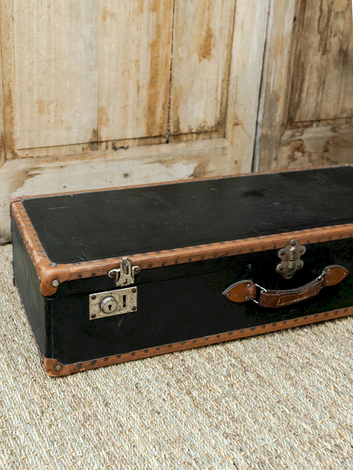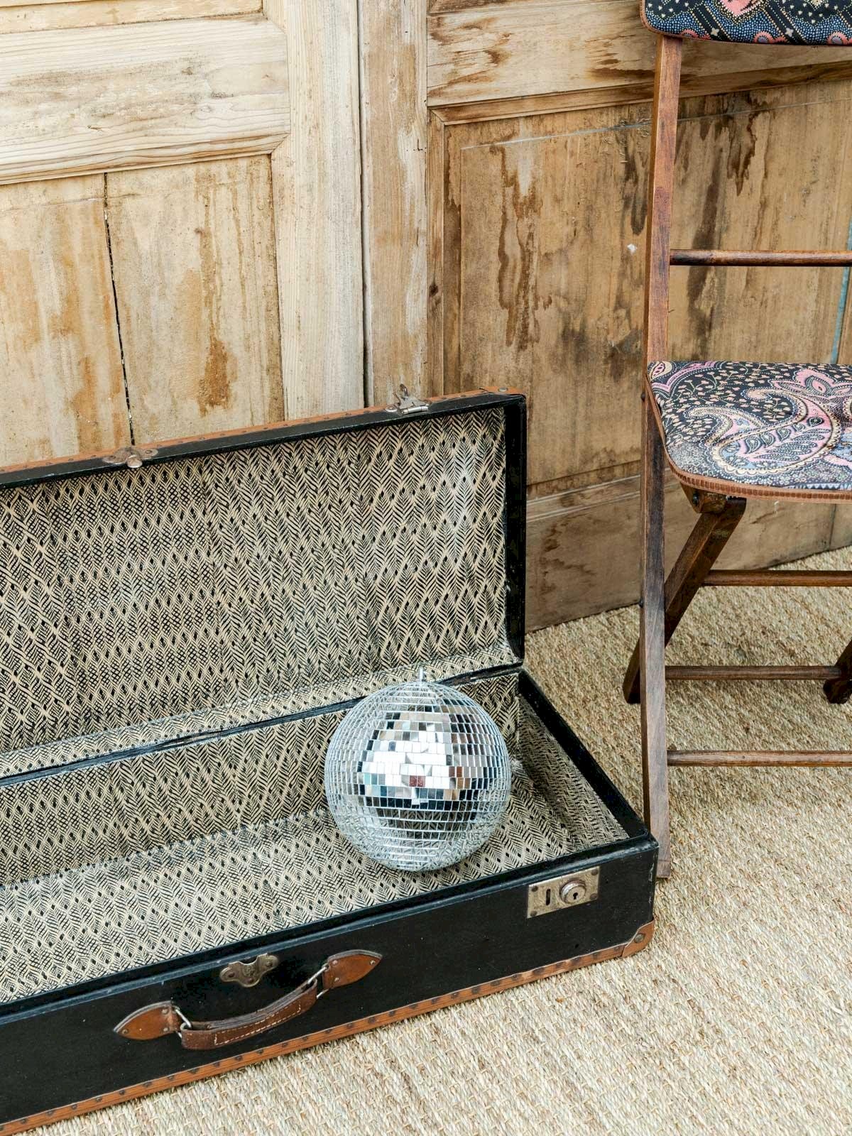 Discover our vintage black rectangular suitcase, an elegant accessory that combines style and practicality. Featuring a high-quality leather handle and sturdy locks, it will appeal to those who appreciate refined travel. Its timeless design and careful finishes make it a must-have for all your trips, adding a touch of sophistication to your getaways. Ready to accompany you on your adventures, this suitcase is the perfect choice for vintage enthusiasts. Web exclusive, the meeting will take place at your home! Length: 82 cm Width: 34 cm Height: 17.5 cm Condition: Used: Item that has been used. Item showing some signs of superficial wear, fully operational and working properly. It may be a demonstration model or an item returned to the store after a short period of use. Any potential imperfections. Brand: Debongout Type: Thrifted Product Material: Leather Style: Country