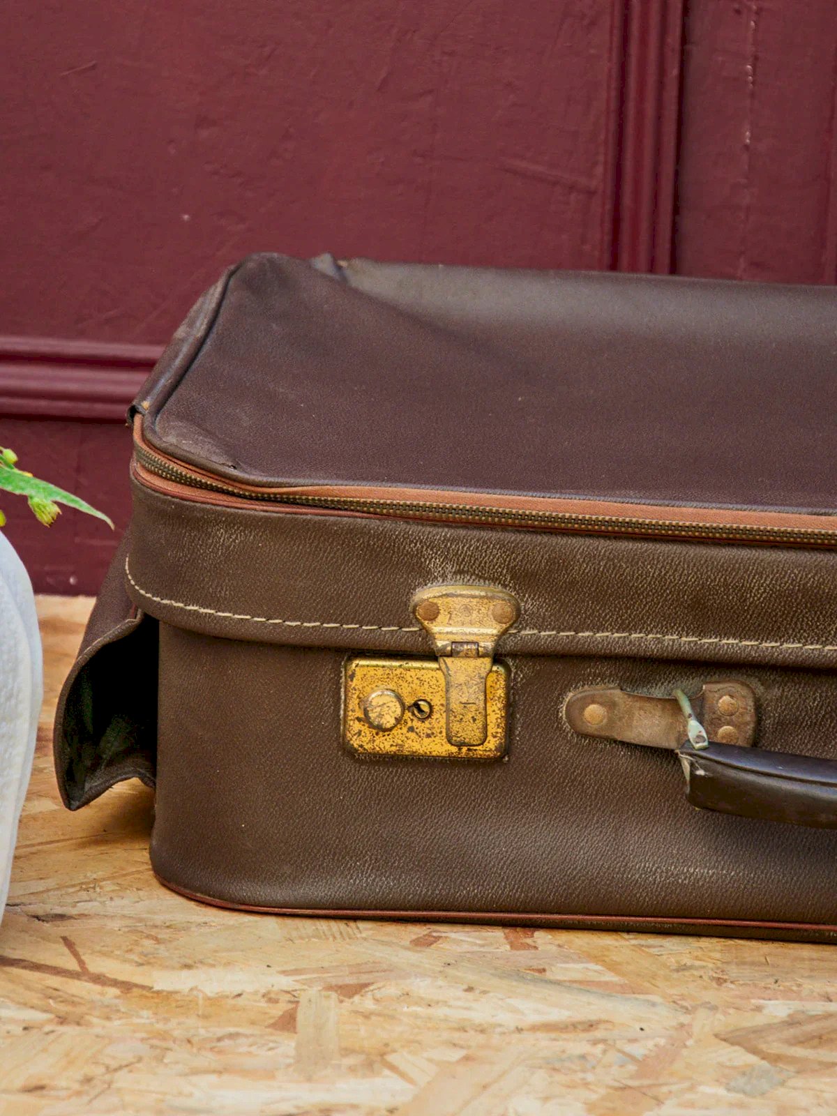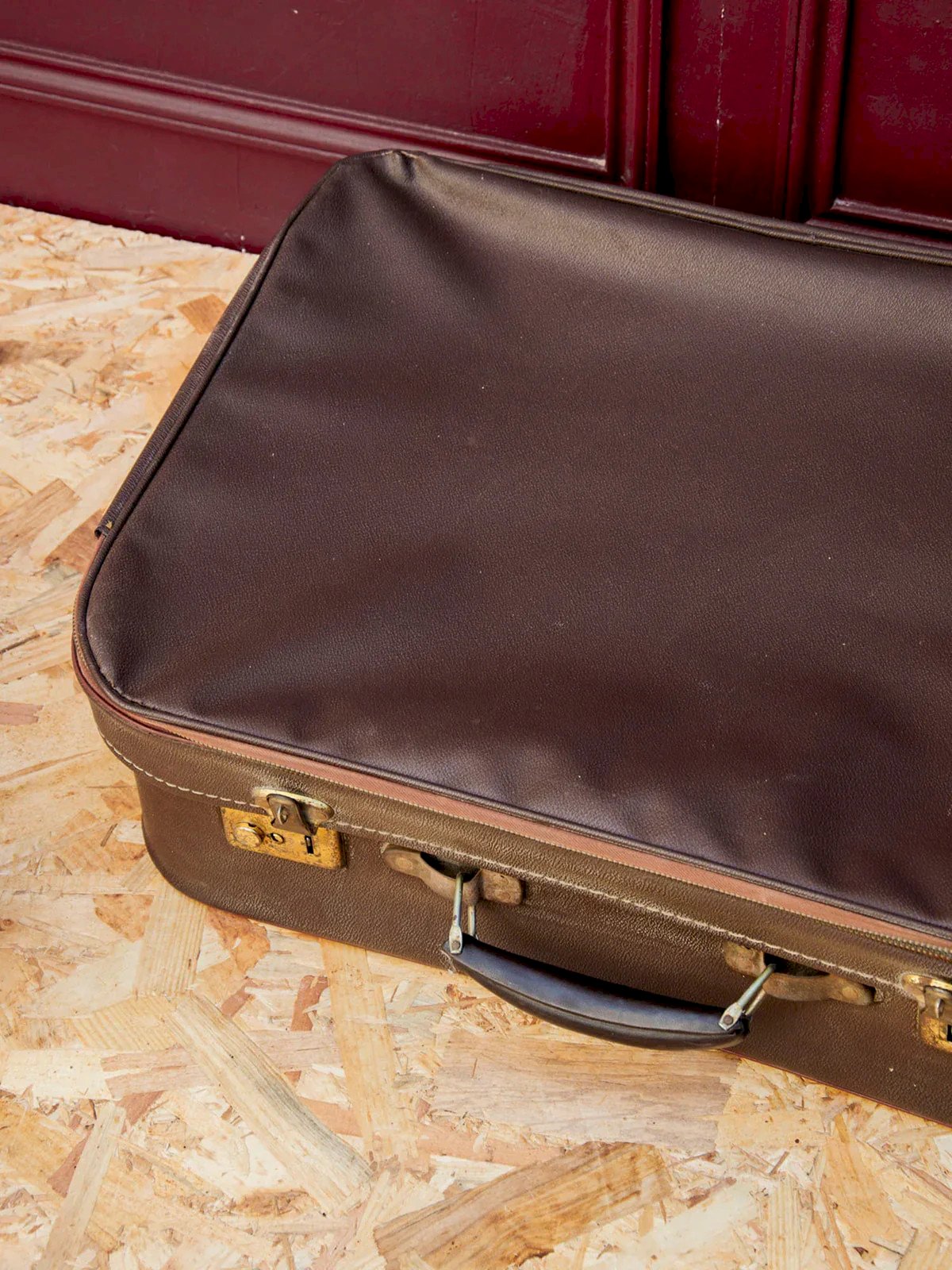Discover the soft brown Lancel Kangourou trunk, a must-have with discreet charm that combines elegance and functionality. Featuring an ergonomic handle, an integrated pouch for an umbrella, and a zip on top, it’s designed to accompany you in style on all your travels. Some signs of wear and a small tear on a corner testify to its history and add to its authenticity. A piece of character, ideal for lovers of beautiful accessories with a storied past. Length: 63 cm Height: 43 cm Depth: 17 cm A brief history of the trunk One of the oldest known trunks dates back to the golden age of the Egyptian pharaohs. Many chests were indeed found in the tomb of Tutankhamun. Even the Greeks and Romans used them on all important journeys. At that time, a trunk was a wooden and bronze chest, sometimes decorated with ivory and precious metal ornaments. The lid was flat to allow the stacking of trunks in the means of transport used. At the discovery of America in 1492, trunks filled with all the new fruits and products from the New World crossed the ocean to reach the Old World. The industrial revolution swept through the 19th century with the beginning of a new concept of travel trunks. Little by little, the chest settled into interiors, becoming the perfect container for childhood memories or a very practical coffee table! Condition: Used: An item that has been used. Item showing some signs of superficial wear... Used: An item that has been used. Item showing some signs of superficial wear, fully operational and functioning correctly. It may be a demonstration model or a returned item in a store after a short period of use, including any possible imperfections. Brand: Debongout Type: Vintage product Material: Faux leather, Fabric Style: Country