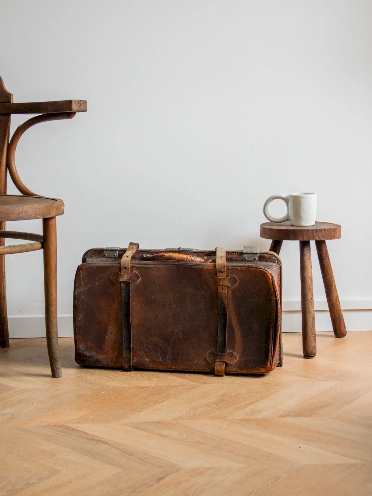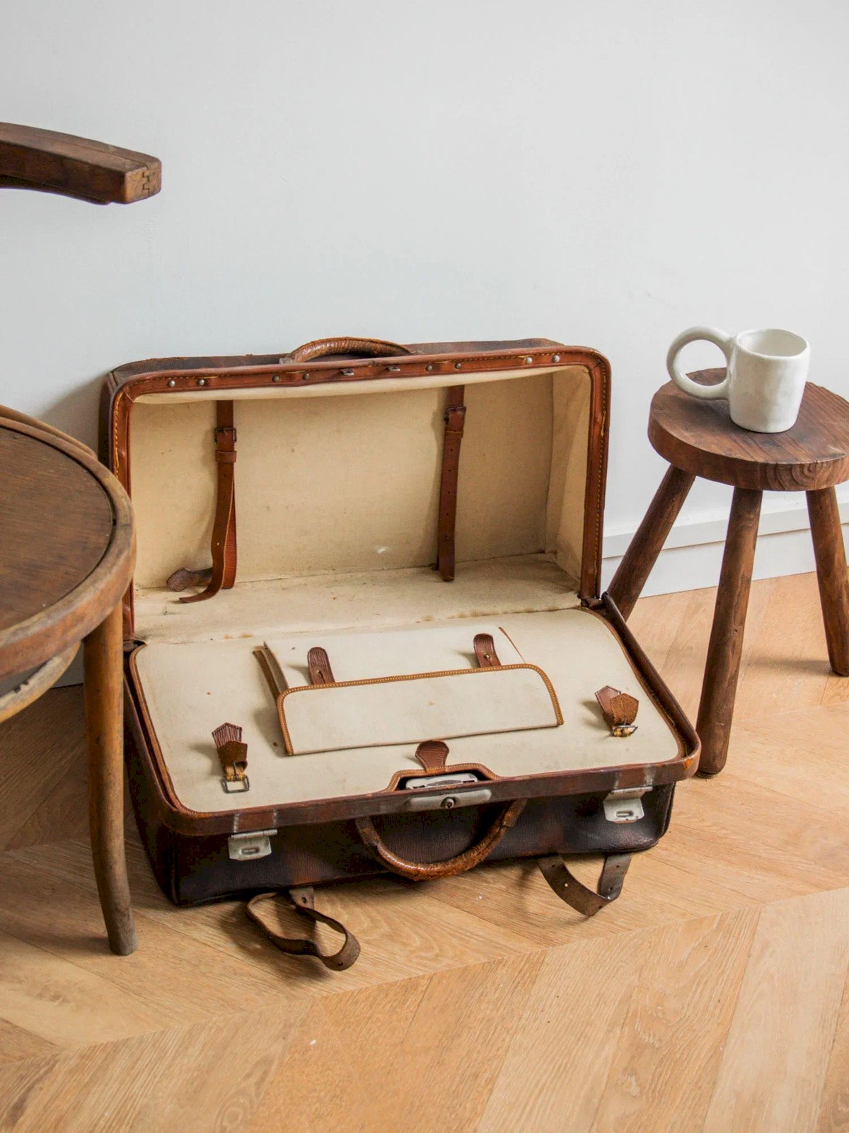 Discover this elegant brown leather trunk, combining charm and practicality. With its sturdy handles and practical attachments, it proves to be ideal for daily use. Although a few signs of wear testify to its history, its two interior compartments offering clever storage give it a unique charm. An essential accessory to add a vintage touch to your decor while remaining functional. Length: 44 cm Width: 27 cm Height: 30 cm A brief history of the trunk One of the oldest known trunks dates back to the golden age of Egyptian pharaohs. Many chests have indeed been found in the tomb of Tutankhamun. Even the Greeks and Romans used them on all important journeys. At that time, the trunk was a chest made of wood and bronze, sometimes adorned with ivory and precious metal ornaments. The lid was flat to allow for stacking trunks in the means of transport used. At the discovery of America in 1492, trunks filled with all the new fruits and products from the New World crossed the ocean to reach the Old World. The industrial revolution swept through the 19th century with the beginning of a new concept of travel trunks. Little by little, the chest settled into interiors, becoming the perfect container for childhood memories or a handy coffee table! Condition: Used: Item that has been utilized. Item showing some signs of superficial wear, fully operational and functioning correctly. It may be a demonstration model or an item returned to the store after a short period of use. Possible imperfections. Brand: Debongout Type: Vintage product Material: Leather Style: Country.