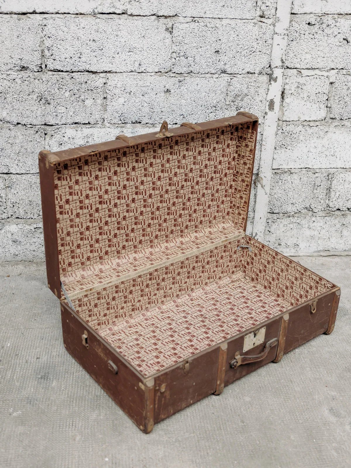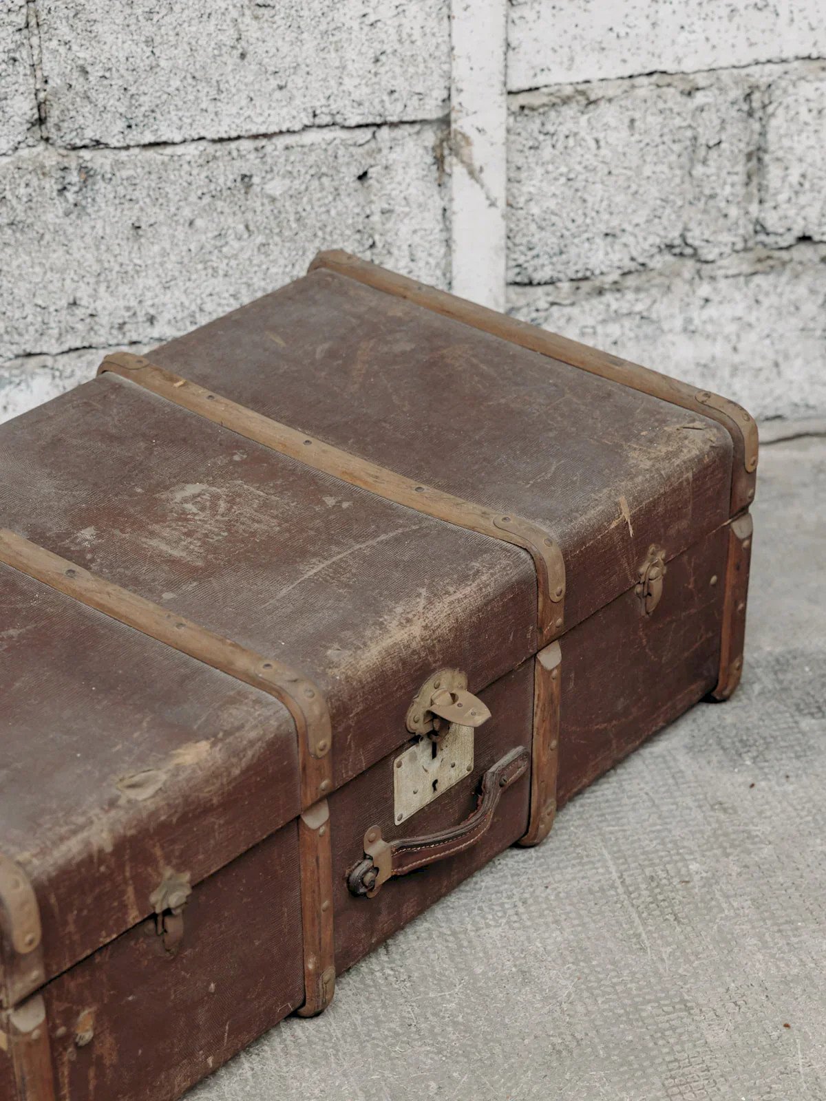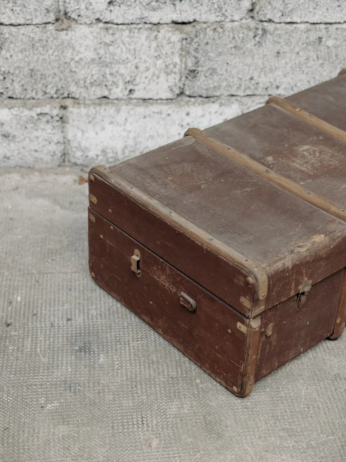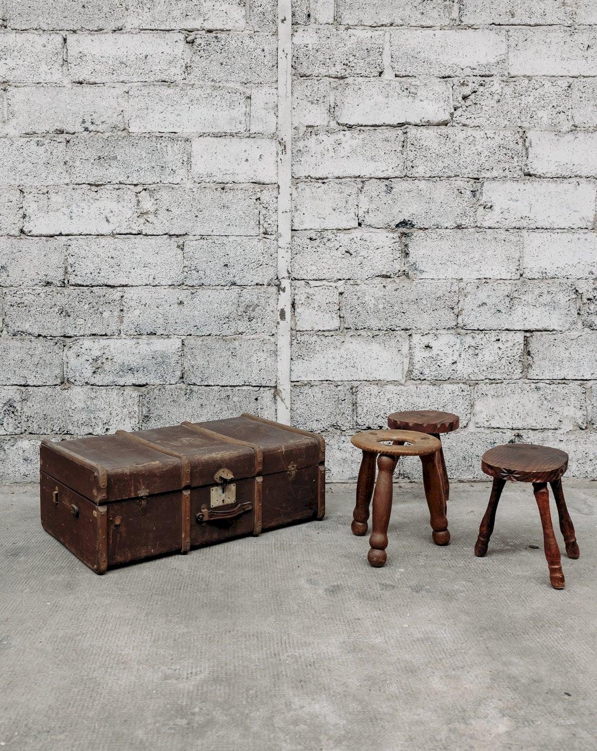 This vintage brown trunk evokes a charm of yesteryear with its patina wood and metal details. Both practical and decorative, it serves as storage while adding a touch of retro elegance to your interior. Perfect for a vintage or industrial style, it will bring character and warmth to your space. Some signs of wear that testify to its former life. Web exclusive, the meeting will take place at your home! Length: 90 cm Width: 52 cm Height: 32 cm A brief history of the trunk One of the oldest known trunks dates back to the golden age of Egyptian pharaohs. Many chests were indeed found in the tomb of Tutankhamun. Even the Greeks and Romans used them for all important journeys. At that time, the trunk was a wooden and bronze chest, sometimes decorated with ivory and precious metal ornaments. The lid was flat to allow for the stacking of trunks in the mode of transport used. Upon the discovery of America in 1492, trunks filled with all the new fruits and products of the New World crossed the ocean to reach the Old World. The Industrial Revolution swept through the 19th century with the beginning of a new concept of travel trunks. Gradually, the chest became a fixture in homes, becoming the perfect container for childhood memories or a very practical coffee table! Condition: Used: Item has been used. Item shows some signs of superficial wear, ... Used: Item has been used. Item shows some signs of superficial wear, fully operational and functioning correctly. It may be a display model or an item returned to the store after a short period of use. Possible imperfections. Brand: Debongout Type: Vintage product Material: Leather Style: Country
