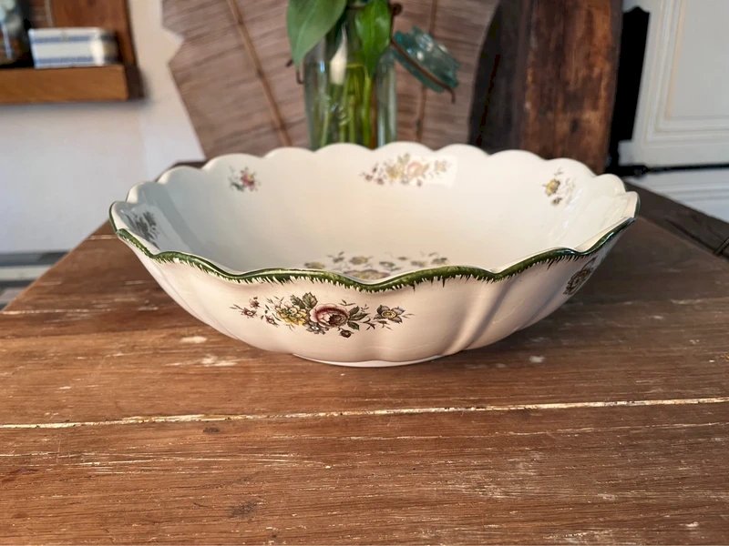 Lunéville bowl in antique earthenware, cream-white color with polychrome floral patterns.
