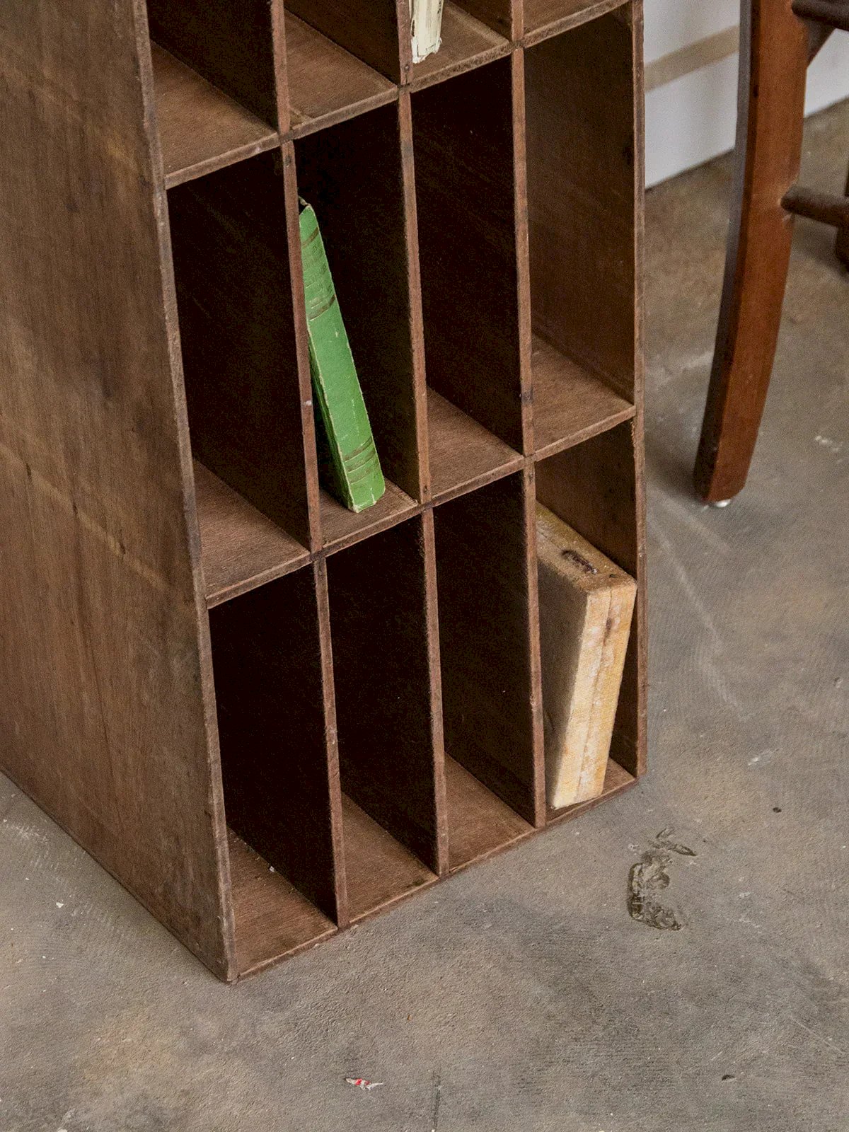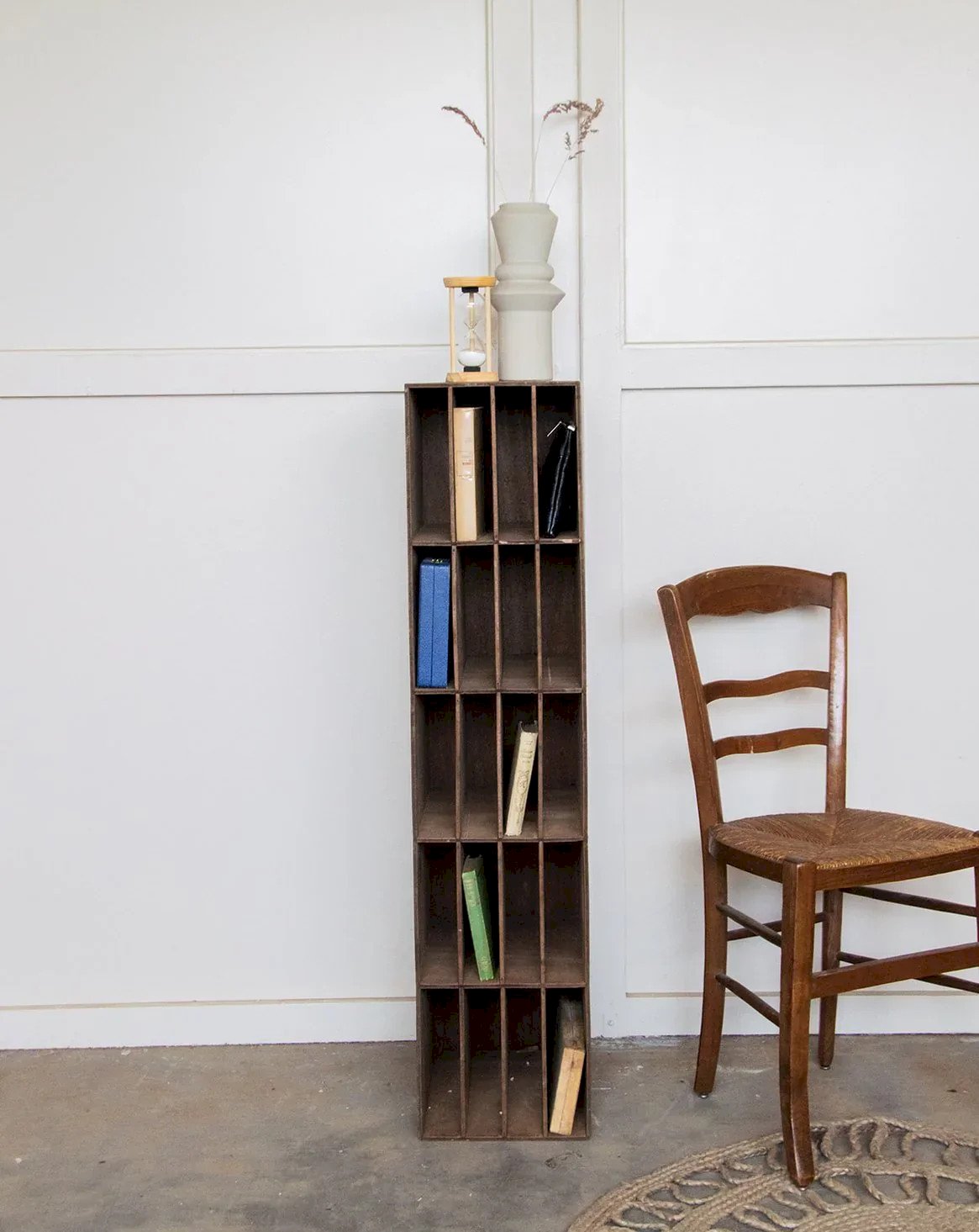 Treat yourself to this elegant narrow compartment shelf, perfect for storing your files and books. Made of dark wood, it combines practicality and aesthetics, fitting seamlessly into any interior. Its compartments allow you to organize your documents while adding a contemporary touch to your space. Bring a stylish storage solution to your office or library with this refined piece of furniture. It can be positioned both vertically and horizontally! Web exclusive, the meeting will take place at your home! Length: 26 cm Width: 39 cm Height: 117 cm Condition: Used: Item has been used. Item shows some signs of superficial wear, ... Used: Item has been used. Item shows some signs of superficial wear, fully operational and functioning correctly. It may be a demonstration model or an item returned to the store after a short period of use, including any imperfections. Brand: Debongout Type: Vintage item Material: Wood Style: Contemporary Customizable: Bookshelves