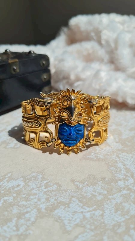 Marbel Bracelet S.G Salvador 14 Mexico - Aztec Bracelet Golden/Blue Ceramic/Metal