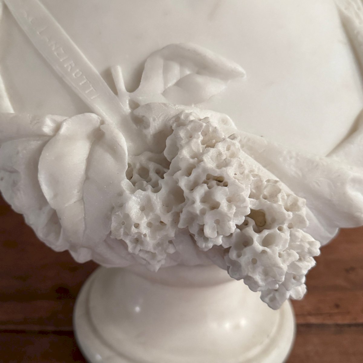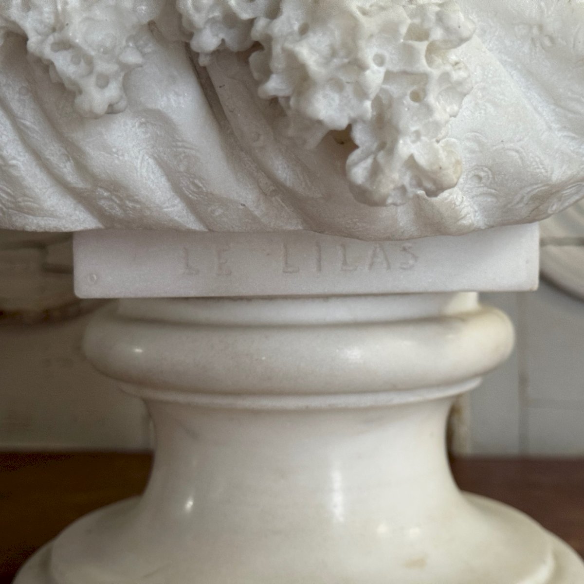 Marble bust by Antonio Giovanni Lanzirotti titled The Lilac M3691 This white marble bust by Antonio Giovanni Lanzirotti represents a young woman with her hair pulled up and adorned with flowers, titled "The Lilac." The artist Antonio Giovanni Lanzirotti delivers a work imbued with delicacy and great finesse, as the features of the face blend with the elegance of the drapery. The lilac flower underscores the refinement and softness of the composition. This is a high-quality work, typical of academic sculpture from the late 19th century. Antonio Giovanni Lanzirotti (1839-1911), born in Palermo, was an Italian sculptor who worked in France and Italy. Lanzirotti is recognized as one of the best sculptors of his time. This sculpture is a decorative and collectible piece in superb condition. We note a small point in the marble on the cheek (photographed), with classic veining on the base. This bust weighs a significant amount, between 60 and 70 kg. Our photos allow you to appreciate the quality of the object. For the condition, please refer to the detailed photos. Feel free to zoom in. The photos are an integral part of the description. Dimensions: Height: 58.5 cm Width: 32 cm Depth: 35 cm A: ZF2611M6HU P: 1633810 I remain at your disposal for any questions. Materials sourced from: France Authenticity: Original Type: Sculpture Period: 19th century and earlier Height: 58.5 cm Material: Marble Length: cm Dimension (cm): From 51 to 70 Width: 32 cm Theme: Bust