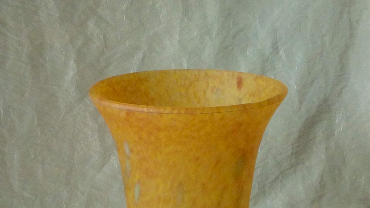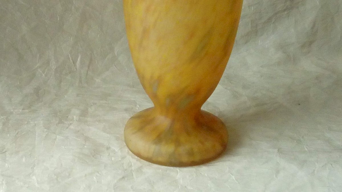 VERY BEAUTIFUL GLASS PASTE VASE MARBLE EFFECT NO SIGNATURE HEIGHT 23 cm DIAMETER 13 cm IN GOOD CONDITION