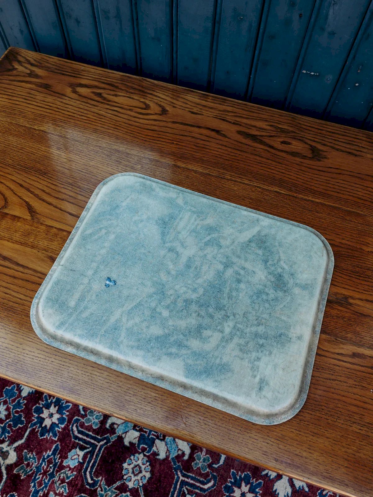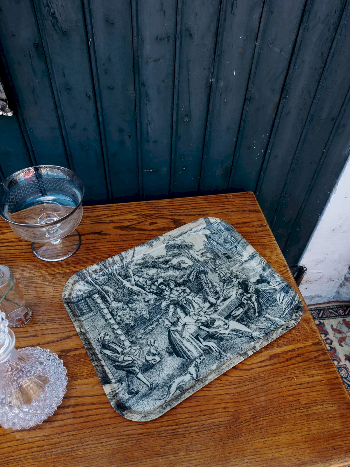 Add an elegant touch to your home with this tray adorned with a pretty Jouy canvas pattern in black. Its streamlined design makes it a practical yet decorative accessory. Ideal for serving or simply enhancing a table or shelf. Lightweight and easy to handle, it adapts to all styles. A beautiful everyday object with a discreet and modern charm. Length: 46 cm Height: 2 cm Depth: 35.5 cm Condition: Used: Item that has been used. Item showing some signs of superficial wear... Used: Item that has been used. Item showing some signs of superficial wear, fully operational and functioning correctly. It may be a demo model or an item returned to the store after a short period of use. Possible imperfections. Brand: Debongout Type: Vintage product Material: Plastic Style: Country