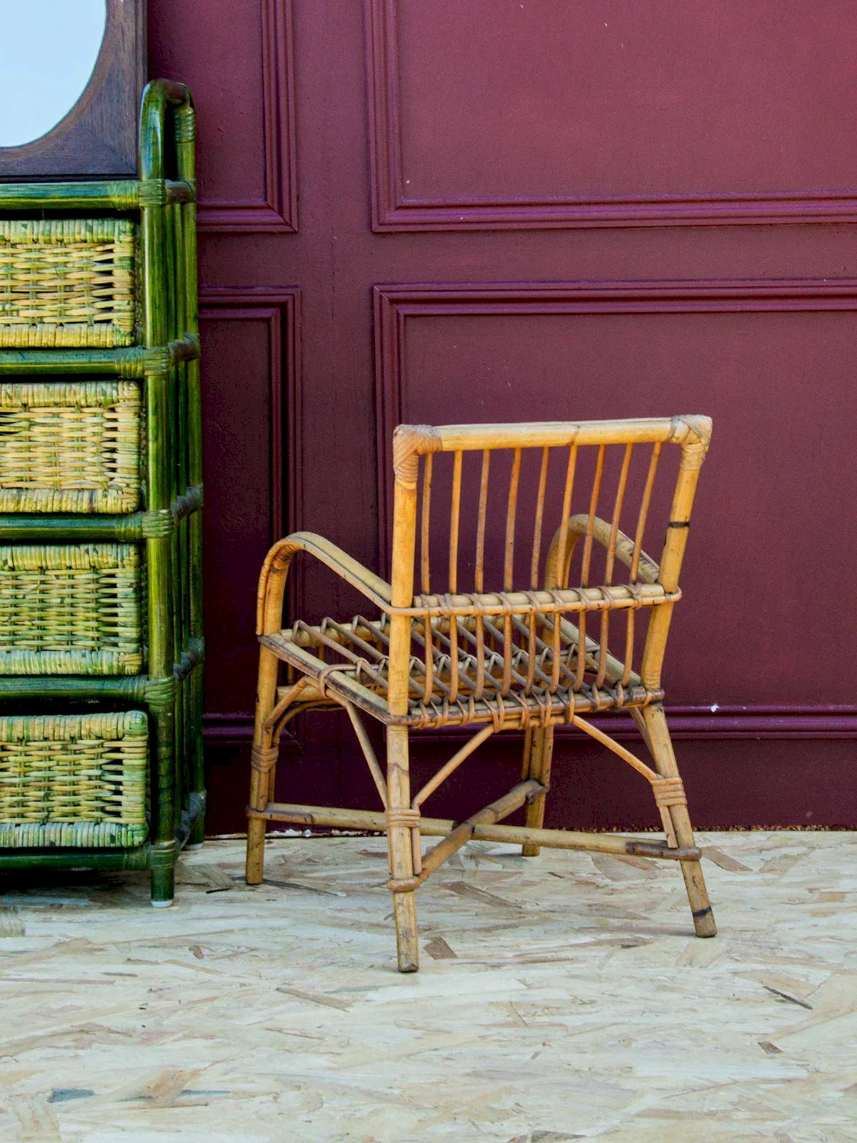 Discover our adorable little rattan armchair for children, perfect for adding a touch of elegance to their room. With its lovely neat details, it combines comfort and style, providing a perfect space for reading or playing. Easy to integrate into any interior, it fits anywhere thanks to its practical dimensions. A charming rattan chair to create a cozy corner that is both soft and aesthetic. Width: 34 cm Seat width: 28.5 cm Height: 48 cm Seat height: 28 cm Depth: 33 cm Seat depth: 28 cm Condition: Used: Item has been used. Item shows some signs of superficial wear... Used: Item has been used. Item shows some signs of superficial wear, fully operational and functioning properly. It may be a demonstration model or an item returned to the store after a short period of use. Possible imperfections. Color: Multicolor Height: Country Style Width: Rattan Length: Armchairs and lounge chairs Brand: Debongout Type: Thrifted product Material: Rattan Style: Country Assembly required: No Assembly level: Fully assembled
